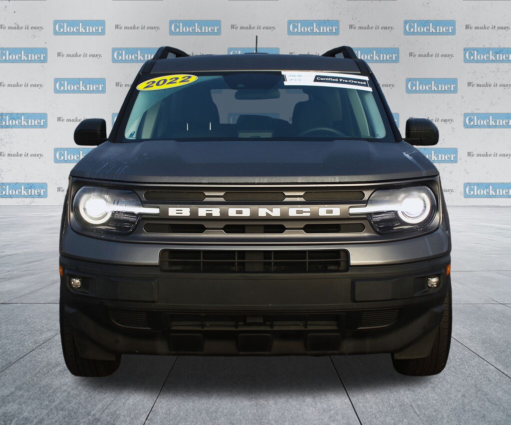 Glockner Chevrolet is proud to offer this great-looking 2022 Ford Bronco Sport in Carbonized Gray Metallic. This 2022 Ford Bronco Sport has passed our comprehensive inspection and comes with the following features; Convenience Package (Front Driver & Passenger Seatback Zipper Pockets, Heated Front Bucket Seats, Intelligent Access (Lock/Unlock), Leather-Wrapped Steering Wheel, LED Fog Lamps, Rear Parking Sensors, Universal Garage Door Opener (UGDO), and Wireless Charging Pad), Equipment Group 200A, Bronco Sport Big Bend, Glockner Certified Certified, 4D Sport Utility, 4WD, Carbonized Gray Metallic, 3.80 Axle Ratio, 4-Wheel Disc Brakes, 6 Speakers, ABS brakes, Air Conditioning, Alloy wheels, AM/FM radio: SiriusXM, AM/FM Stereo, Auto High-beam Headlights, Automatic temperature control, Brake assist, Compass, Delay-off headlights, Driver door bin, Driver vanity mirror, Dual front impact airbags, Dual front side impact airbags, Electronic Stability Control, Emergency communication system: SYNC 3 911 Assist, Four wheel independent suspension, Front anti-roll bar, Front Bucket Seats, Front Center Armrest, Front reading lights, Fully automatic headlights, Heated door mirrors, Illuminated entry, Knee airbag, Low tire pressure warning, Occupant sensing airbag, Outside temperature display, Overhead airbag, Overhead console, Panic alarm, Passenger door bin, Passenger vanity mirror, Power door mirrors, Power steering, Power windows, Radio data system, Rear anti-roll bar, Rear reading lights, Rear seat center armrest, Rear window defroster, Rear window wiper, Remote keyless entry, Roof rack: rails only, Rubberized Second Row Seat Backs, Security system, SiriusXM Radio, Speed control, Speed-sensing steering, Speed-Sensitive Wipers, Split folding rear seat, Steering wheel mounted audio controls, SYNC 3 Communications & Entertainment System, SYNC 3/Apple CarPlay/Android Auto, Tachometer, Telescoping steering wheel, Tilt steering wheel, Traction control, Trip computer, Unique Cloth Front Bucket Seats, Variably intermittent wipers, and Wheels: 17" Carbonized Gray-Painted Aluminum.
