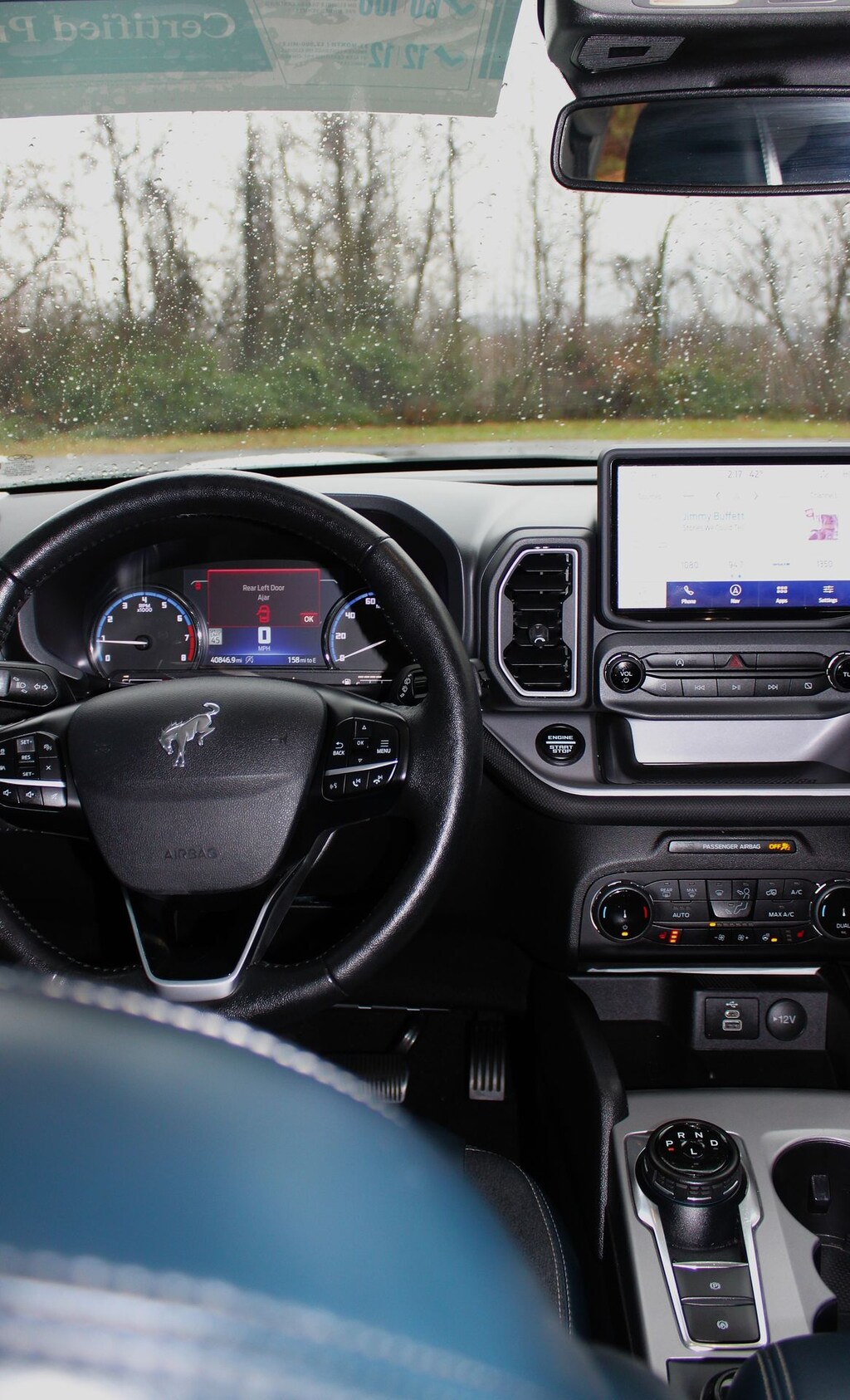 I got a 2025 Big Bend with the black diamond off road package. The steel modular front and rear in combination with bush guard gives this year model. A very aggressive off road look. With the ability to easily mount accessories and power them with the factory installed auxiliary switches. Hitch receiver seamlessly mounted into the rear steel bumper flanked by some very chunky recovery points. The upgraded aluminum rims wrapped with Continental all-terrains. It make this the most capable bronco sport yet. The interior of the 2025 has been updated with a new 13 inch touchscreen with Android Auto and apple car play. The lines of the dash flow elegantly from the new infotainment screen to the new all digital 12 inch gauge chaster. Toggling through the different modes on the gauge chaster is very intuitive, and all the displays are laid out very cleanly. Moving from gauge chaster the center storage cubby just below the infotainment screen there is a wireless charger and USB/ USB-c ports. The passenger side of that same cubby gets a handle and a matching one on the roof just in case the driver bucks a little too much. The passenger also gets a mesh storage area. That leads us to the fact this vehicle has tons of storage options all throughout. You have pockets on the sides of the front two seat big enough for the latest new phones. Very generous door storage on all four doors plus huge glove box and center console with 12 volt outlet. The back side of the center console has air vents and another 12 volt outlet plus a 110 outlet. Now getting to the cargo area it is massive for a crossover SUV. With off road package you get a cargo management system and a very nice rubber mat. Under that there is a full size tire plus scissor jack and funnel to use with the capless filler system. On the liftgate there isa pair of very bright led lights turned on with a switch in the cargo area. This feature packed vehicle has tons awesome gadgets and hidden a little homages I spend all day just talk that. At the end of the day it is car. So how does it drive. It is wonderful, the steering and pedal response is beautiful. Rides very smooth and little to no road noise going down the highway. The active cruise control and co-pilot 360 have been very handy. The car literally drives itself most of the time. There is not enough good things I could same about this car. I love it and you pick one too. You will see what I mean. - 5.0