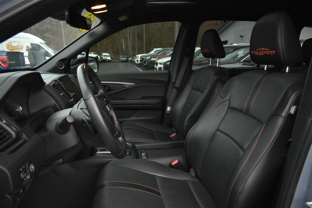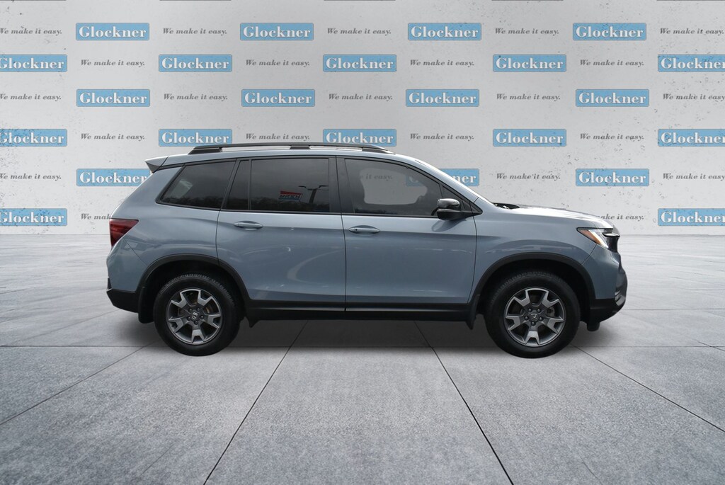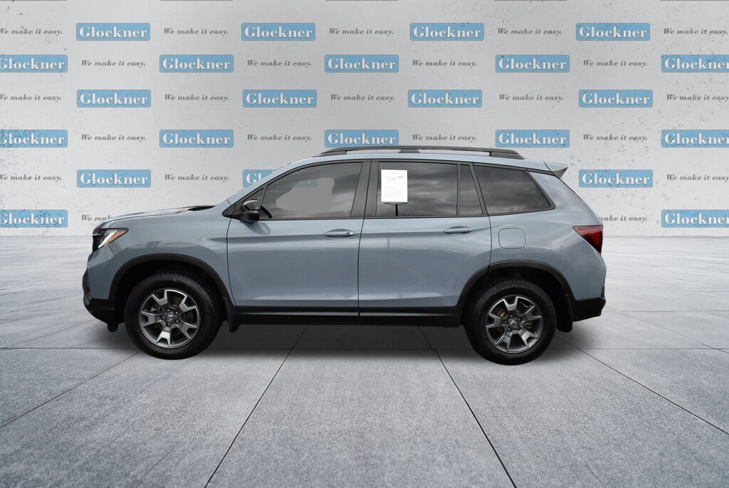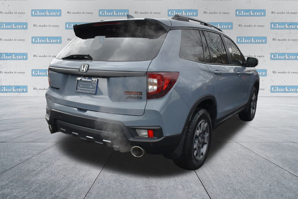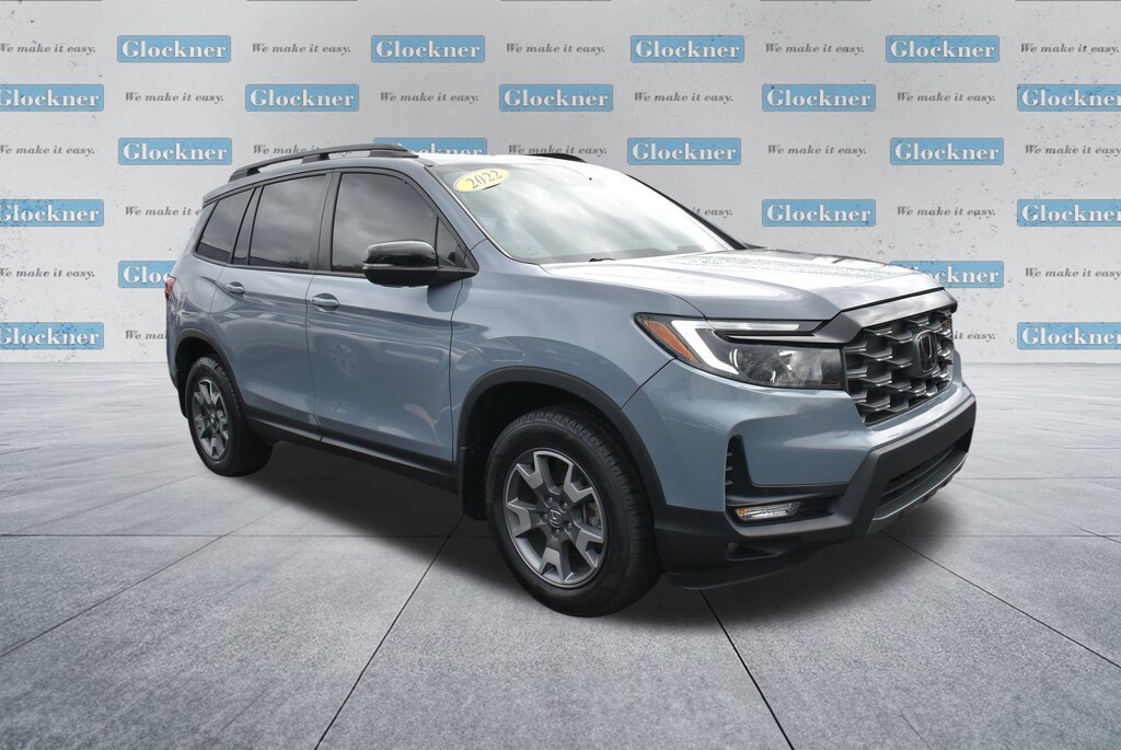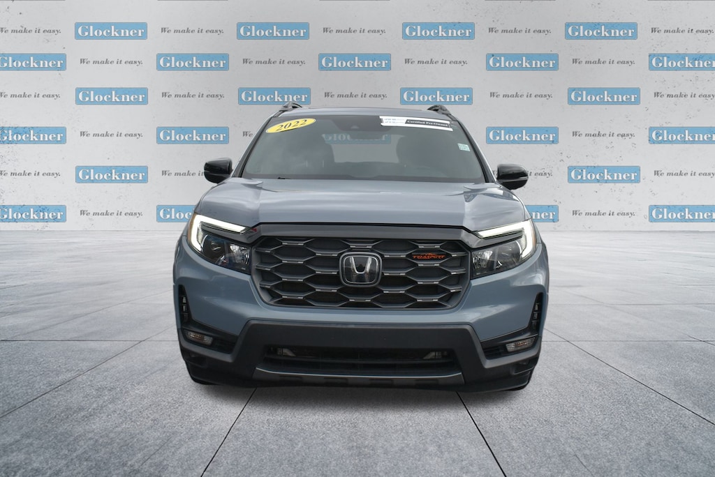 Glockner Ford Southpoint is proud to offer this wonderful-looking 2022 Honda Passport in Sonic Gray Pearl. This 2022 Honda Passport has passed our comprehensive inspection and comes with the following features; Ford Blue Advantage: Blue Certified Certified, 4-Wheel Disc Brakes, 4.334 Axle Ratio, 7 Speakers, A/V remote: CabinControl, ABS brakes, Air Conditioning, Alloy wheels, AM/FM radio: SiriusXM, Apple CarPlay/Android Auto, Auto High-beam Headlights, Auto-dimming Rear-View mirror, Automatic temperature control, Blind Spot Information (BSI) System warning, Brake assist, Bumpers: body-color, Compass, Delay-off headlights, Driver door bin, Driver vanity mirror, Driver's Seat Mounted Armrest, Dual front impact airbags, Dual front side impact airbags, Electronic Stability Control, Emergency communication system: HondaLink Assist, Exterior Parking Camera Rear, Forward collision: Collision Mitigation Braking System (CMBS) + FCW mitigation, Four wheel independent suspension, Front anti-roll bar, Front Bucket Seats, Front Center Armrest, Front dual zone A/C, Front fog lights, Front reading lights, Fully automatic headlights, Garage door transmitter: HomeLink, Heated door mirrors, Heated Front Bucket Seats, Heated front seats, Illuminated entry, Lane departure: Lane Keeping Assist System (LKAS) active, Leather-Trimmed Seats w/Orange Stitching, Memory seat, Navigation system: Honda Satellite-Linked Navigation System, Occupant sensing airbag, Outside temperature display, Overhead airbag, Overhead console, Panic alarm, Passenger door bin, Passenger seat mounted armrest, Passenger vanity mirror, Power door mirrors, Power driver seat, Power Liftgate, Power moonroof, Power passenger seat, Power steering, Power windows, Radio data system, Radio: 215-Watt Audio System w/7 Speakers, Rear air conditioning, Rear anti-roll bar, Rear reading lights, Rear seat center armrest, Rear window defroster, Rear window wiper, Remote keyless entry, Roof rack: rails only, Security system, Speed control, Speed-sensing steering, Split folding rear seat, Spoiler, Steering wheel mounted audio controls, Tachometer, Telescoping steering wheel, Tilt steering wheel, Traction control, Trip computer, Turn signal indicator mirrors, Variably intermittent wipers, and Wheels: 18" Machine-Finish Alloy.