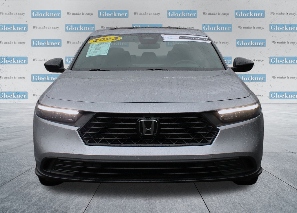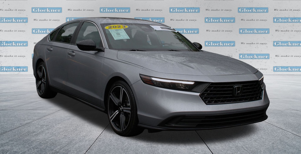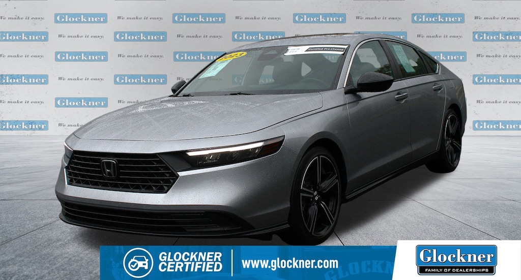 Glockner Honda Toyota is proud to offer this fantastic 2023 Honda Accord Hybrid in Lunar Silver Metallic. This 2023 Honda Accord Hybrid has passed our comprehensive inspection and comes with the following features; Glockner Certified Certified, 2.0L 16V DOHC, Adaptive Cruise Control: Adaptive Cruise Control (ACC) with Low-Speed Follow, Automatic temperature control, Exterior Parking Camera Rear, Lane departure: Lane Keeping Assist System (LKAS) active, Power driver seat, Power moonroof, Radio: 180-Watt Audio System, 4-Wheel Disc Brakes, 8 Speakers, ABS brakes, Air Conditioning, Alloy wheels, AM/FM radio, Apple CarPlay/Android Auto, Auto High-beam Headlights, Brake assist, Bumpers: body-color, Compass, Delay-off headlights, Driver door bin, Driver vanity mirror, Dual front impact airbags, Dual front side impact airbags, Electronic Stability Control, Emergency communication system: HondaLink, Fabric Seat Trim, Four wheel independent suspension, Front anti-roll bar, Front Bucket Seats, Front Center Armrest, Front dual zone A/C, Front reading lights, Fully automatic headlights, Illuminated entry, Knee airbag, Leather Shift Knob, Leather steering wheel, Low tire pressure warning, Occupant sensing airbag, Outside temperature display, Overhead airbag, Overhead console, Panic alarm, Passenger door bin, Passenger vanity mirror, Power door mirrors, Power steering, Power windows, Radio data system, Rear anti-roll bar, Rear reading lights, Rear seat center armrest, Rear side impact airbag, Rear window defroster, Remote keyless entry, Security system, Speed control, Speed-sensing steering, Speed-Sensitive Wipers, Split folding rear seat, Spoiler, Steering wheel mounted audio controls, Telescoping steering wheel, Tilt steering wheel, Traction control, Trip computer, Variably intermittent wipers, and Wheels: 19" x 8.5J Berlina Black.