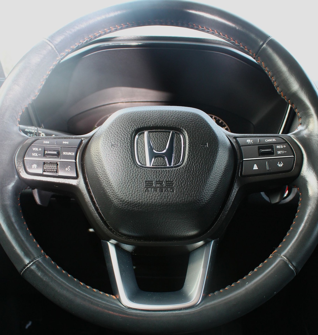 Comfort and convenience are paramount in the CR-V Hybrid Sport, with Heated Front Bucket Seats, a Leather-Wrapped Steering Wheel, and a Leather Shift Knob. The Adaptive Cruise Control with Low-Speed Follow ensures a smooth and effortless driving experience, while the Dual-Zone Automatic Climate Control keeps you and your passengers comfortable in any weather.
