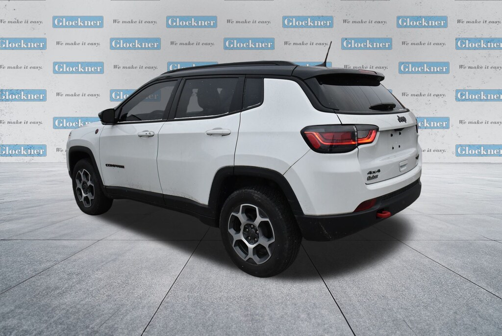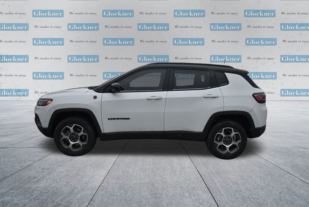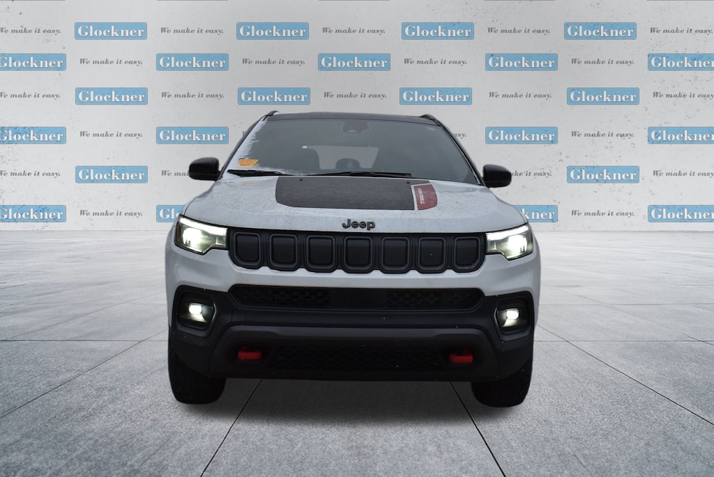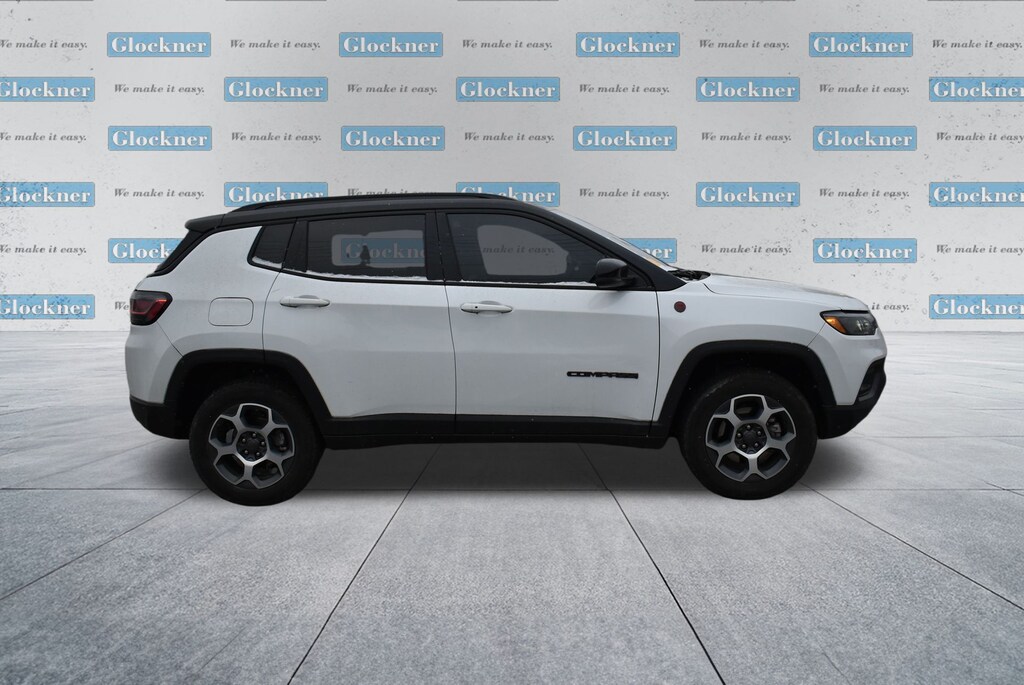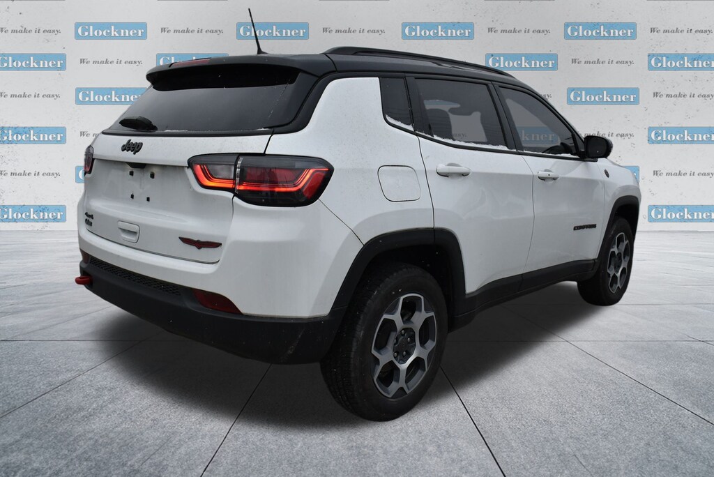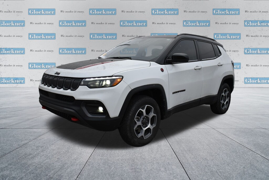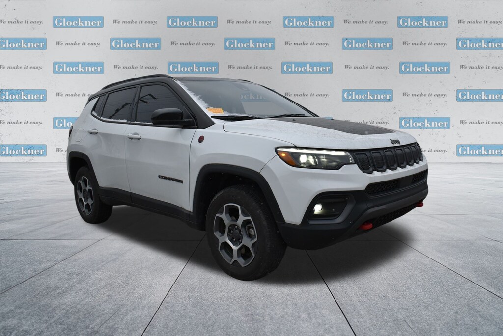 Glockner Chrysler Dodge Jeep Ram of Ashland is proud to offer this charming 2022 Jeep Compass in Bright White Clearcoat. This 2022 Jeep Compass has passed our comprehensive inspection and comes with the following features; Quick Order Package 2GE, Sun and Sound Group (Power Front/Fixed Rear Full Sunroof and Premium Alpine Speaker System), Trailhawk Elite Group (10.1" Touchscreen Display, 115V Auxiliary Power Outlet, 2nd Row Heated Seats, 2nd Row USB Type A/C Charge Only, 4G LTE Wi-Fi Hot Spot, Alexa Built-In, Cluster 10.25" TFT Color Display, Connected Travel & Traffic Services, Disassociated Touchscreen Display, Driver Seat Memory, Foot Activated Open 'N Go Liftgate, For Details, Visit DriveUconnect.com, For More Info, Call 800-643-2112, Global Telematics Box Module (TBM), GPS Navigation, HD Radio, Heated Front Seats, Integrated Voice Command w/Bluetooth, Leather Wrapped Steering Wheel, LED Low/Highbeam Projector Headlamps, No Satellite Coverage HI/AK/PR/VI/GU, Power 8-Way Adjust Front Passenger Seat, Power Adjust 8-Way Driver Seat, Power Liftgate, Premium Leather Trimmed Bucket Seats, Premium LED Fog Lamps, Premium Taillamps, Radio: Uconnect 5 Nav w/10.1" Display, Remote Start System, Reversible Carpet/Vinyl Cargo Mat, SiriusXM Guardian - Included Trial (B), SiriusXM Radio Service, SiriusXM Satellite Radio, SiriusXM w/360L, Vehicle Information Center, Ventilated Front Seats, and Windshield Wiper De-Icer), Glockner Certified Certified, 4WD, 4-Wheel Disc Brakes, 4.334 Axle Ratio, 6 Speakers, ABS brakes, Air Conditioning, Alloy wheels, AM/FM radio: SiriusXM, Anti-whiplash front head restraints, Auto High-beam Headlights, Auto-dimming Rear-View mirror, Automatic temperature control, Brake assist, Bumpers: body-color, Compass, Delay-off headlights, Driver door bin, Driver vanity mirror, Dual front impact airbags, Dual front side impact airbags, Electronic Stability Control, Emergency communication system: SiriusXM Guardian, Four wheel independent suspension, Front anti-roll bar, Front Bucket Seats, Front Center Armrest w/Storage, Front dual zone A/C, Front fog lights, Front reading lights, Fully automatic headlights, Heated door mirrors, Illuminated entry, Knee airbag, Leather Shift Knob, Low tire pressure warning, Occupant sensing airbag, Outside temperature display, Overhead airbag, Overhead console, Panic alarm, ParkView Rear Back-Up Camera, Passenger door bin, Passenger vanity mirror, Power door mirrors, Power steering, Power windows, Premium Cloth/Leather Trim Bucket Seats, Radio: Uconnect 5 w/10.1" Display, Rain sensing wipers, Rear anti-roll bar, Rear seat center armrest, Rear window defroster, Rear window wiper, Remote keyless entry, Roof rack: rails only, Security system, Speed control, Split folding rear seat, Spoiler, Steering wheel mounted audio controls, Tachometer, Telescoping steering wheel, Tilt steering wheel, Traction control, Trip computer, Turn signal indicator mirrors, Variably intermittent wipers, and Wheels: 17" x 6.5" Painted Diamond Cut AluminuM.