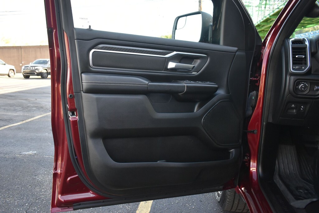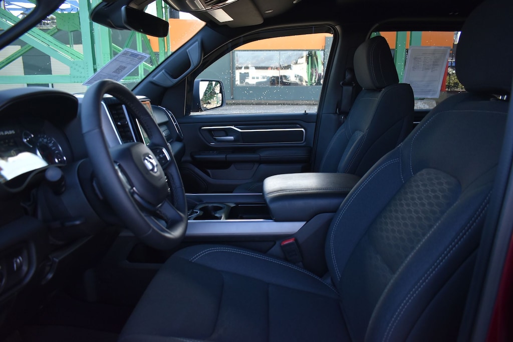 The spacious and well-appointed interior of this Ram 1500 Big Horn/Lone Star offers a premium driving experience. Enjoy features like heated front seats, a heated steering wheel, a 400W inverter, and a host of advanced technology and convenience amenities.