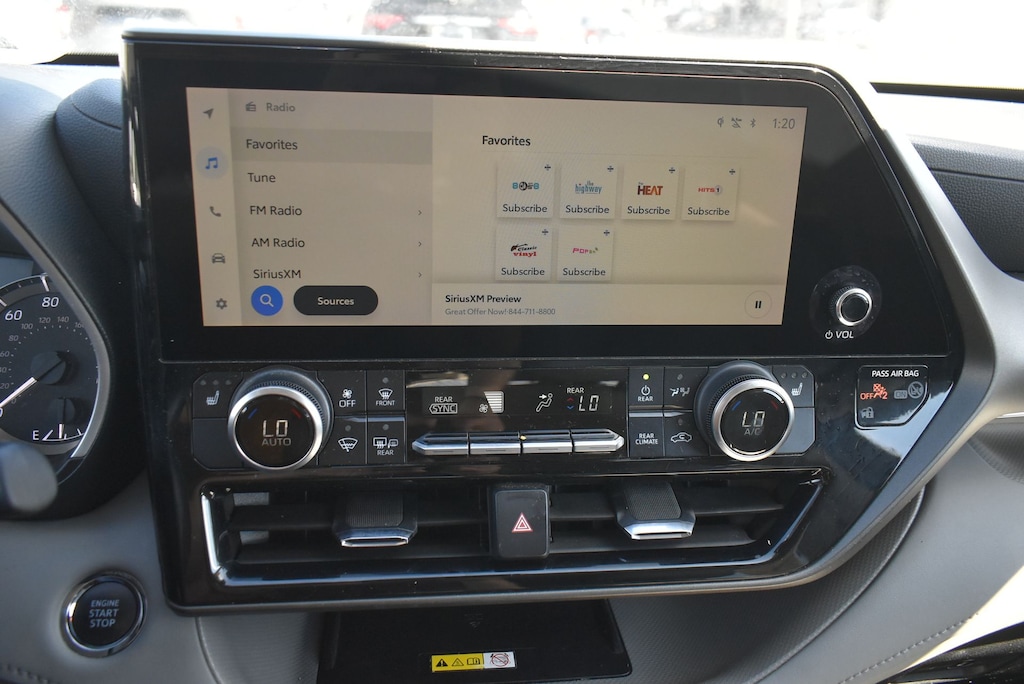The interior of this Highlander XLE is equally impressive, featuring a host of premium amenities that will elevate your driving experience. Enjoy the comfort of heated front seats, a power driver's seat, and a panoramic moonroof that floods the cabin with natural light. Stay connected with the 8-inch Toyota Audio Multimedia system, complete with Apple CarPlay and Android Auto integration, as well as Sirius XM satellite radio.