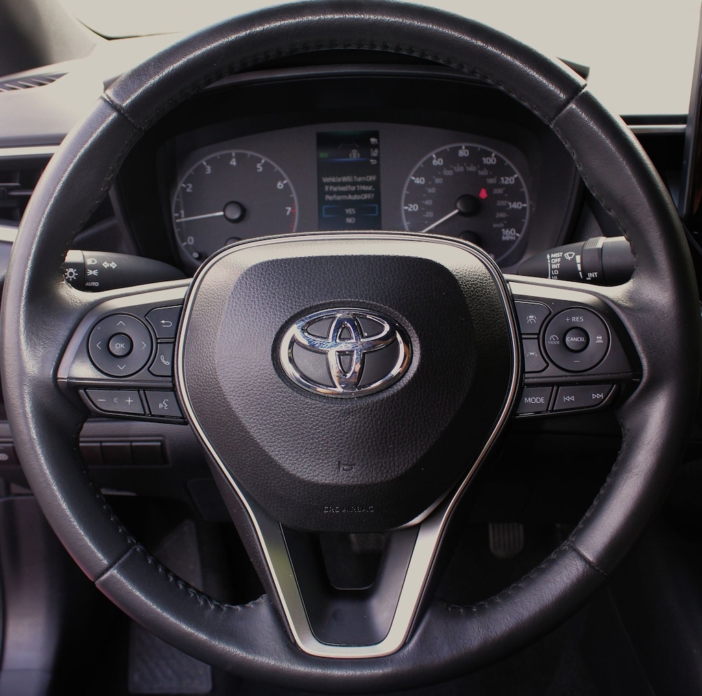 Personally, I was searching for a car that has a nice, sporty look to it, but most importantly, a car that I would feel safe driving. The exterior has a great, sporty and aggressive look compared to older Corolla models, while the interior is well-designed and comfortable—The dashboard has a clean, futuristic feel to it. I like that the dashboard also gives you the option to view your speed digitally, and displays speed-limit signs, brighten or dim control lights / LCD screen. The reverse camera has a nice view range while displaying great image quality. Taller drivers/passengers have lots of legroom upfront, but I’ll admit not so much legroom when sitting in the backseat. also something to think about when using lane assist—depending on the quality of road you’re driving on, the car sometimes picks up tire skid marks resulting in the car trying to divert away from it, but it rarely ever happens. Overall, it’s a great sporty and reliable car with great fuel economy.
