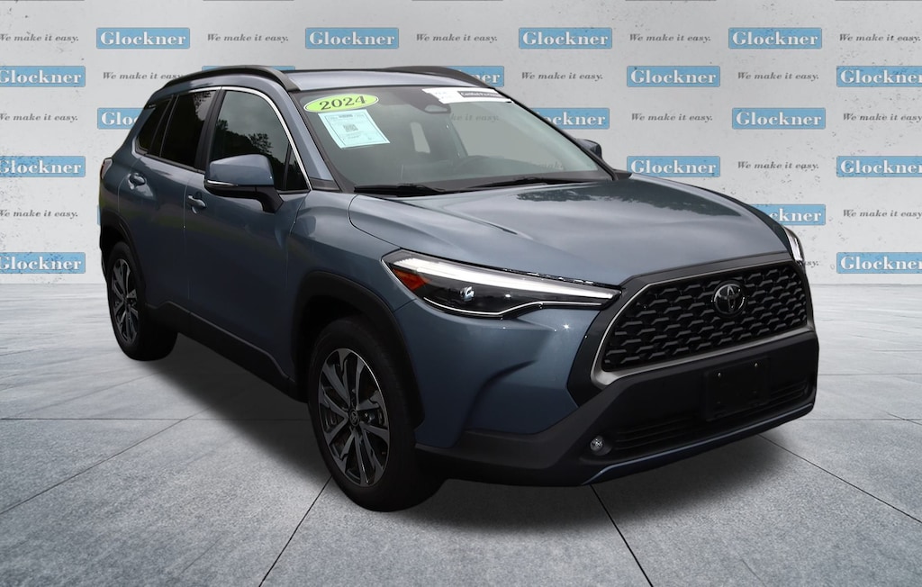 Glockner Chrysler Dodge Jeep Ram of Ashland is proud to offer this great-looking 2024 Toyota Corolla Cross in Celestite. This 2024 Toyota Corolla Cross has passed our comprehensive inspection and comes with the following features; Glockner Certified Certified, Automatic temperature control, Exterior Parking Camera Rear, Heated Front Bucket Seats, Power driver seat, Radio: 8" Touch-Screen Display Audio, Wheels: 18" Black-Painted Machined Alloy, 4-Wheel Disc Brakes, 4.014 Axle Ratio, 6 Speakers, ABS brakes, Air Conditioning, Alloy wheels, AM/FM radio: SiriusXM, Auto High-beam Headlights, Auto-dimming Rear-View mirror, Brake assist, Bumpers: body-color, Delay-off headlights, Driver door bin, Driver vanity mirror, Dual front impact airbags, Dual front side impact airbags, Electronic Stability Control, Emergency communication system: Safety Connect (10-year trial), Four wheel independent suspension, Front anti-roll bar, Front Bucket Seats, Front Center Armrest, Front dual zone A/C, Front fog lights, Front reading lights, Fully automatic headlights, Garage door transmitter: HomeLink, Heated door mirrors, Heated front seats, Illuminated entry, Knee airbag, Leather Shift Knob, Leather steering wheel, Low tire pressure warning, Occupant sensing airbag, Outside temperature display, Overhead airbag, Panic alarm, Passenger door bin, Passenger vanity mirror, Power door mirrors, Power steering, Power windows, Radio data system, Rear anti-roll bar, Rear seat center armrest, Rear side impact airbag, Rear window defroster, Rear window wiper, Remote keyless entry, Softex Synthetic Leather Seat Trim, Speed control, Split folding rear seat, Spoiler, Steering wheel mounted audio controls, Tachometer, Telescoping steering wheel, Tilt steering wheel, Traction control, Trip computer, Turn signal indicator mirrors, and Variably intermittent wipers.