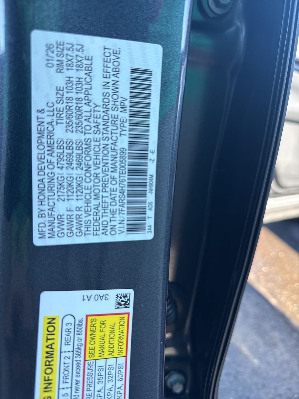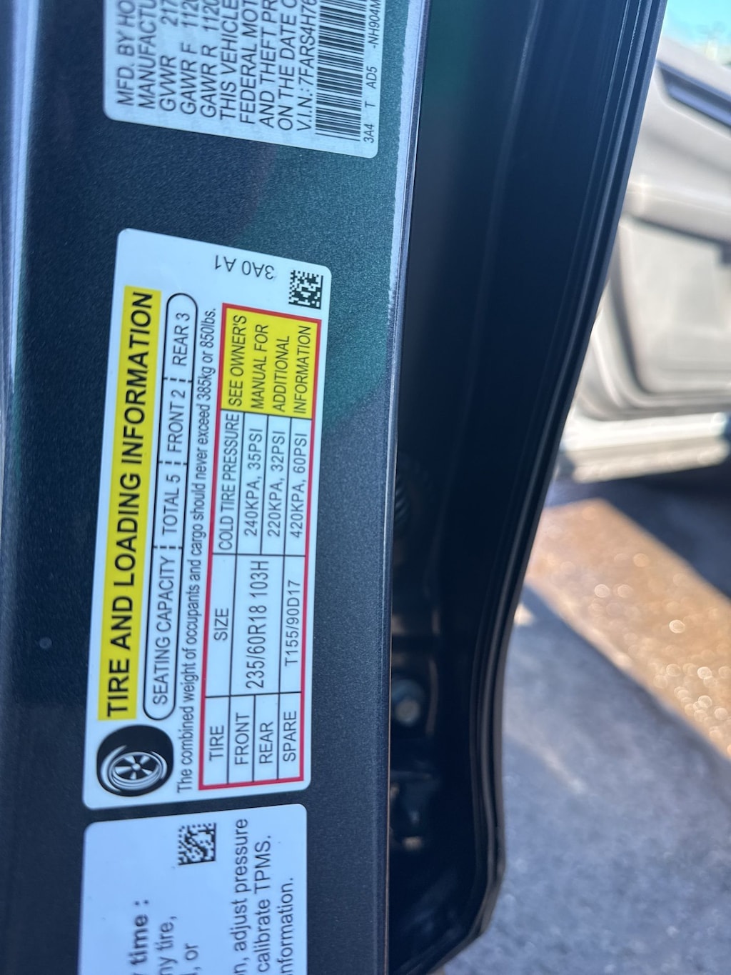 - Front tires: 235/60HR18.0
