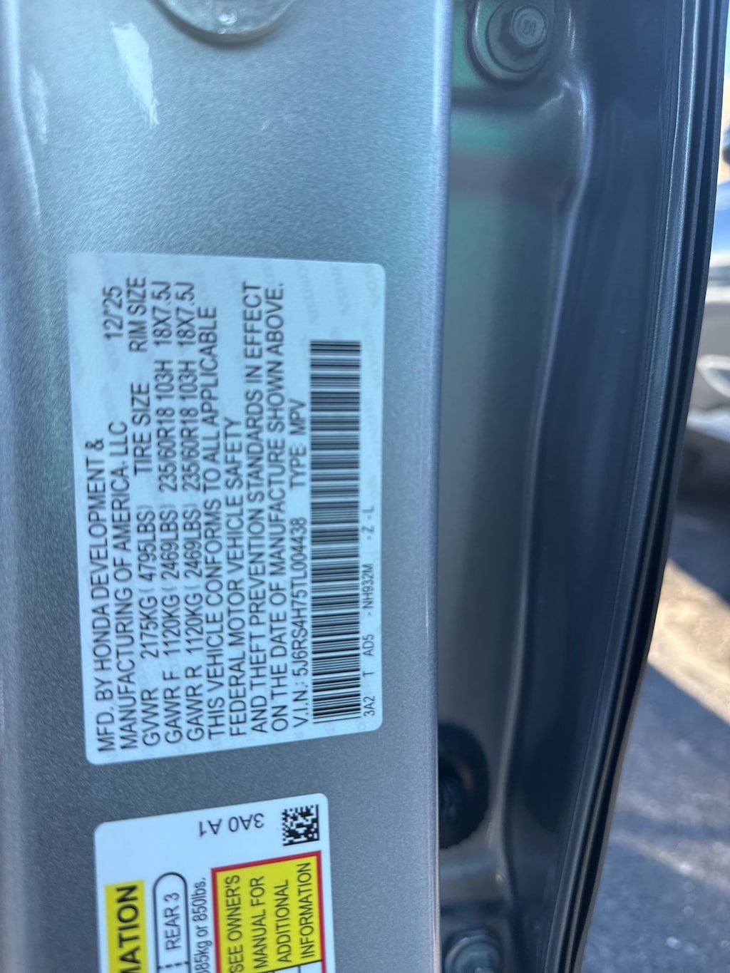 - 5J6RS4H75TL004438