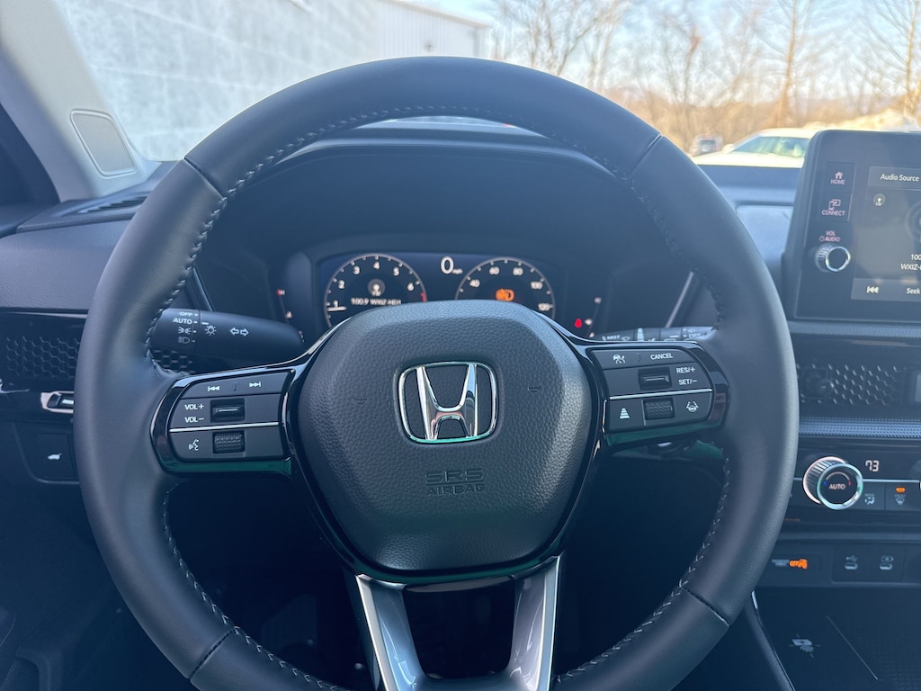 Step inside and experience the unparalleled comfort of the CR-V's leather-trimmed interior. The spacious cabin offers ample room for passengers and cargo, with split-folding rear seats and a generous cargo area. Intuitive tech features, including Apple CarPlay and Android Auto, seamlessly integrate your digital life with the vehicle.