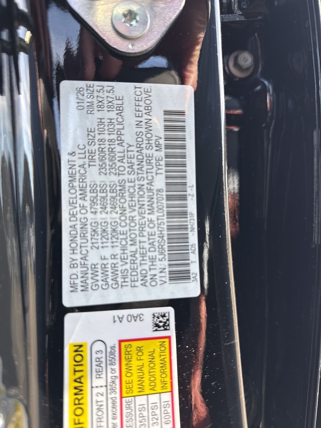 - Front tires: 235/60HR18.0