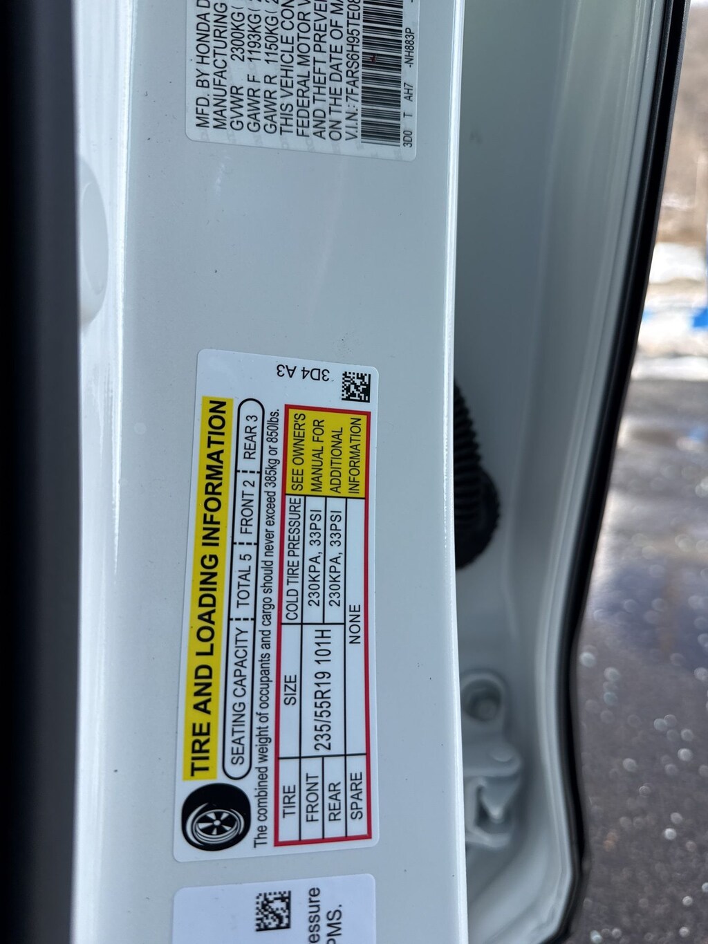 - Front tires: 235/55HR19.0