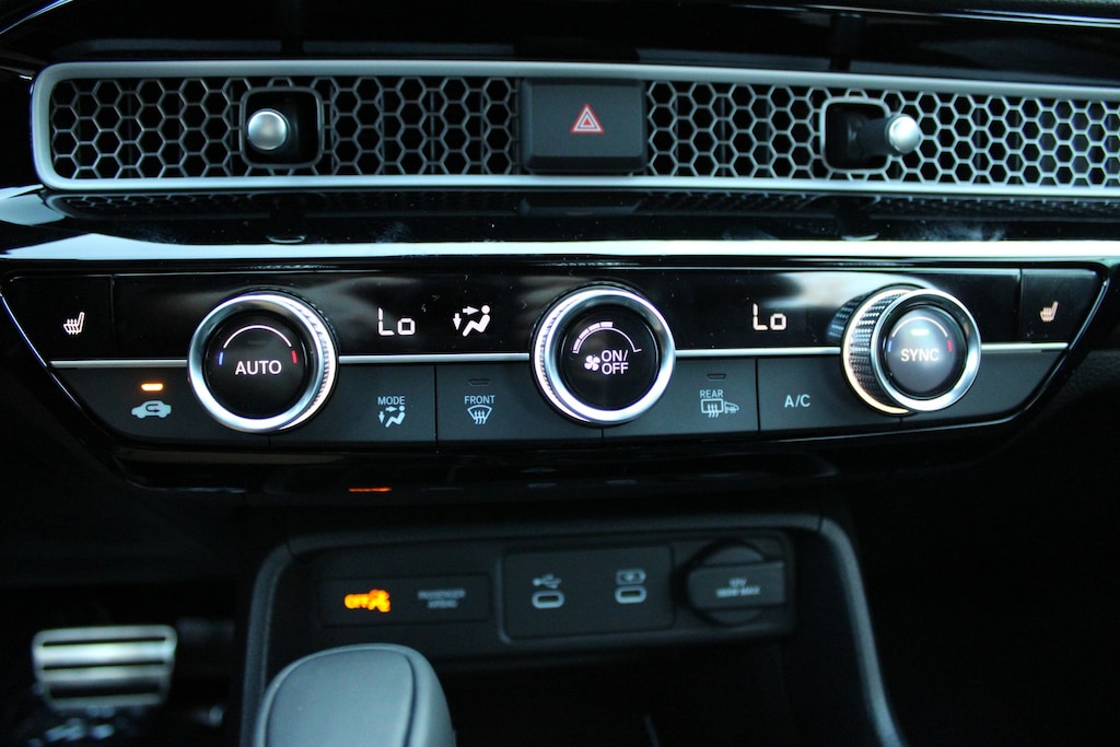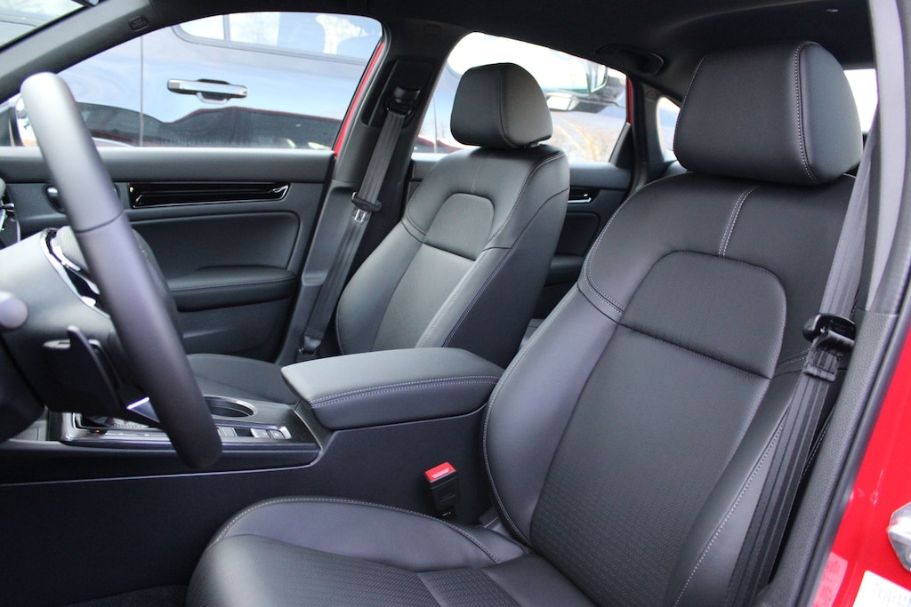 Step inside the Civic Hybrid and be captivated by the meticulously crafted interior. Sink into the luxurious leather-trimmed seats, which are both heated and power-adjustable, ensuring maximum comfort. The Bose Premium Sound System and seamless integration of Apple CarPlay and Android Auto keep you connected and entertained on the go.