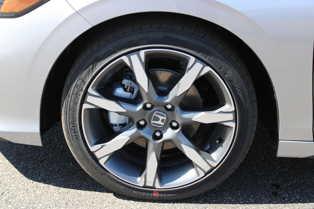 The exterior of the Civic Hybrid Sport Touring is adorned in a sleek Silver finish, accentuating its dynamic and sophisticated appearance. The bold, aerodynamic design not only turns heads but also enhances the vehicle's efficiency, providing a seamless blend of form and function.