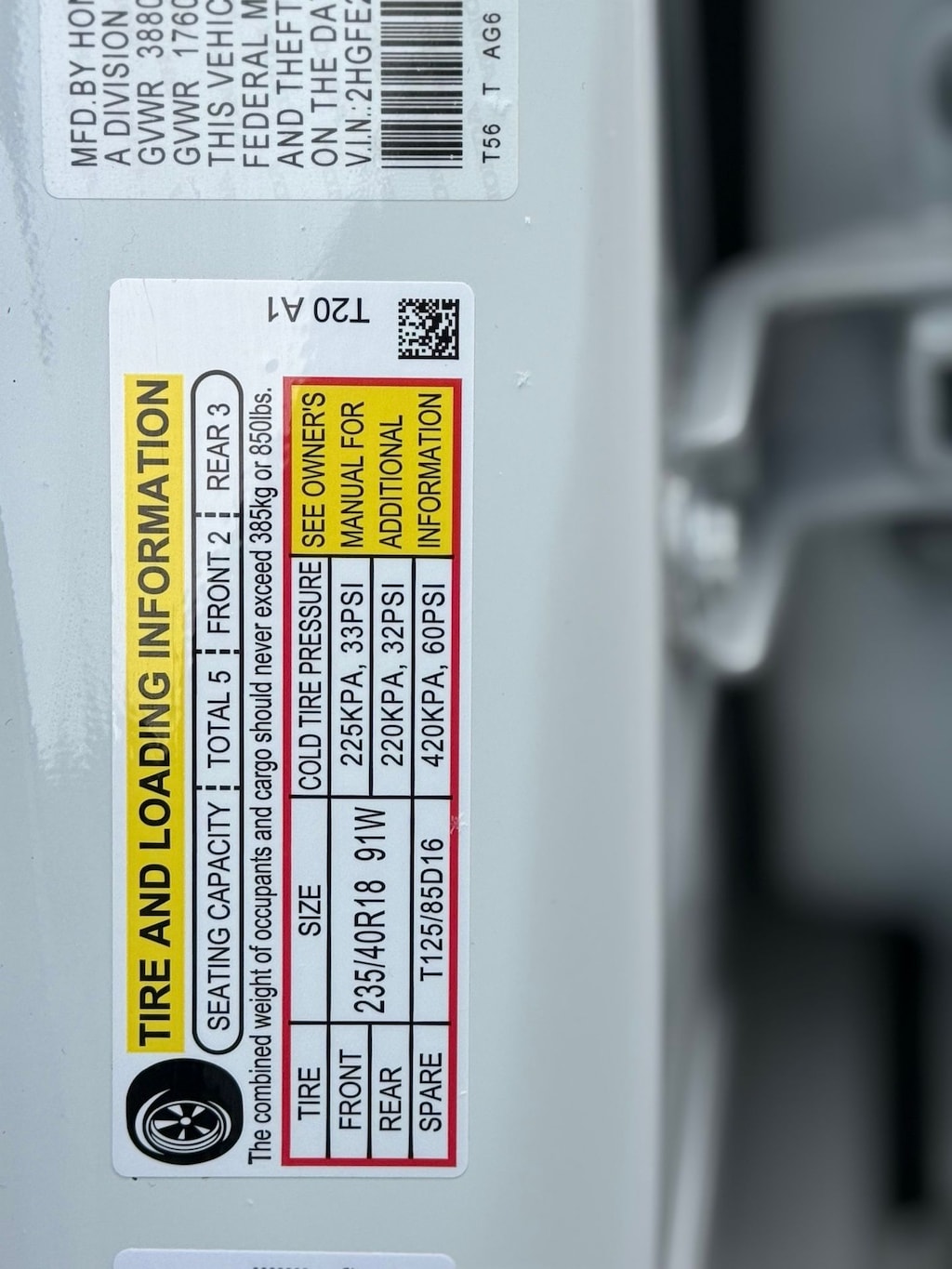 - Front tires: 235/40WR18.0