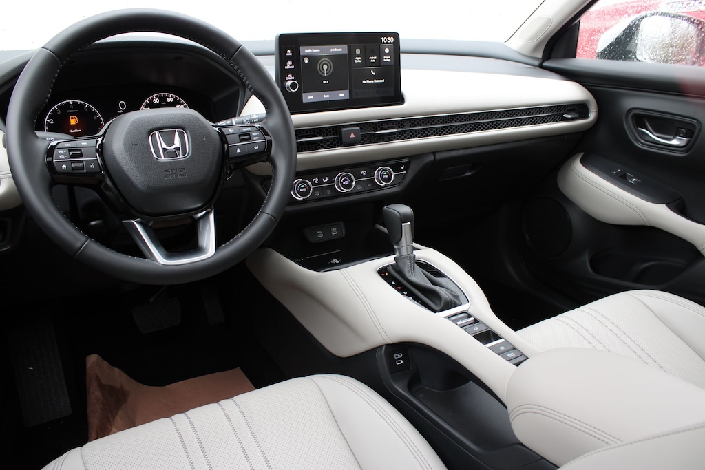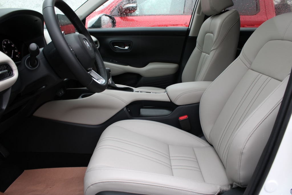 The HR-V EX-L's interior is a sanctuary of refined comfort and advanced technology. Sink into the plush, leather-trimmed seats and enjoy the convenience of dual-zone automatic climate control, power driver's seat, and a premium audio system with Apple CarPlay and Android Auto integration. The spacious cabin and versatile 60/40 split-folding rear seats ensure ample room for passengers and cargo, making this SUV the perfect companion for your adventures.