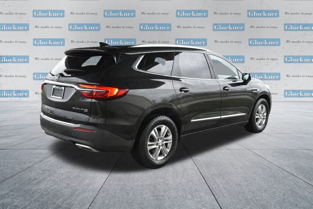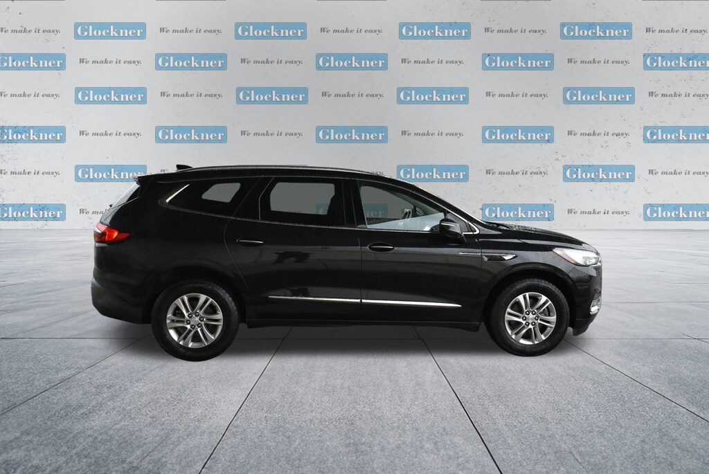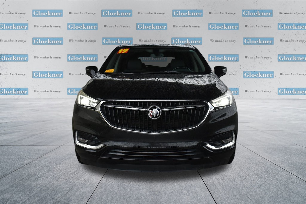 Glockner of Ironton is proud to offer this beautiful-looking 2019 Buick Enclave in Ebony Twilight Metallic. This 2019 Buick Enclave has passed our comprehensive inspection and comes with the following features; 5000lbs Trailering Package (Heavy-Duty Cooling System), Floor Liner Package (LPO) (1st & 2nd Row All-Weather Floor Liner (LPO), 3rd Row All-Weather Floor Liner (LPO), and Integrated Cargo Liner (LPO)), Front Mounting License Plate Bracket Package, Preferred Equipment Group 1SL, AWD, 120-Volt Power Outlet, 18 Painted Aluminum Wheels, 3.49 Axle Ratio, 3rd row seats: split-bench, 4-Wheel Disc Brakes, 6 Speakers, 6-Speaker Audio System Feature, 7-Passenger Seating, ABS brakes, Air Conditioning, Alloy wheels, AM/FM radio: SiriusXM, Apple CarPlay/Android Auto, Auto High-beam Headlights, Auto-dimming door mirrors, Auto-dimming Rear-View mirror, Automatic temperature control, Brake assist, Bumpers: body-color, Compass, Delay-off headlights, Driver door bin, Driver vanity mirror, Dual front impact airbags, Dual front side impact airbags, Electronic Stability Control, Emergency communication system: OnStar and Buick connected services capable, Four wheel independent suspension, Front anti-roll bar, Front Bucket Seats, Front Center Armrest, Front dual zone A/C, Front Power Sliding Moonroof, Front reading lights, Fully automatic headlights, Garage door transmitter, Heated door mirrors, Heated Driver & Front Passenger Seats, Heated front seats, Illuminated entry, Leather steering wheel, Low tire pressure warning, Occupant sensing airbag, Outside temperature display, Overhead airbag, Overhead console, Panic alarm, Passenger door bin, Passenger vanity mirror, Perforated Leather-Appointed Seat Trim, Power door mirrors, Power Driver Lumbar Control Seat Adjuster, Power driver seat, Power Liftgate, Power Passenger Lumbar Control Seat Adjuster, Power passenger seat, Power steering, Power windows, Premium audio system: Buick Infotainment System, Radio data system, Radio: Buick Infotainment Sys AM/FM Stereo w/Nav, Radio: Buick Infotainment System AM/FM Stereo, Rear air conditioning, Rear anti-roll bar, Rear Parking Sensors, Rear reading lights, Rear window defroster, Rear window wiper, Remote keyless entry, Roof rack: rails only, Security system, SiriusXM Radio, Speed control, Speed-sensing steering, Spoiler, Steering wheel mounted audio controls, Tachometer, Telescoping steering wheel, Tilt steering wheel, Traction control, Trip computer, Turn signal indicator mirrors, Variably intermittent wipers, and Voltmeter.AWD.Odometer is 14764 miles below market average!