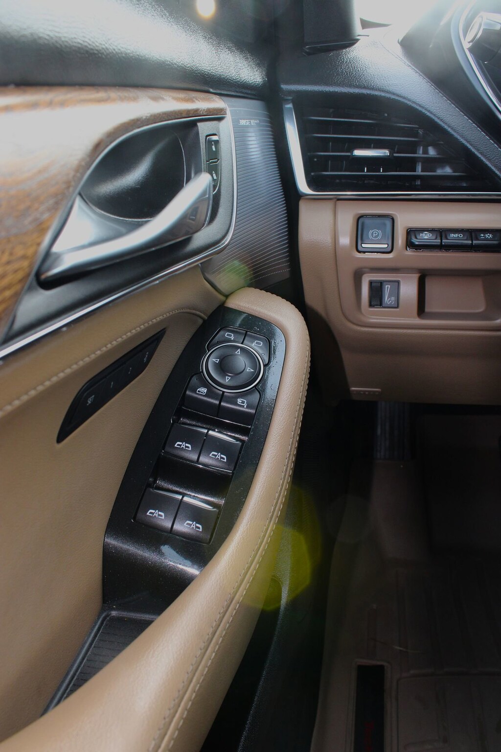 - Body-color heated, power-adjustable, power-folding outside mirrors with driver-side auto-dimming, puddle lamps and memory: