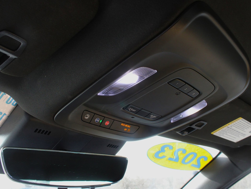 - Automatically switches the front passenger seat frontal and knee airbag on or off and illuminates a status light, in the overhead console, that indicates whether the airbags are on or off1