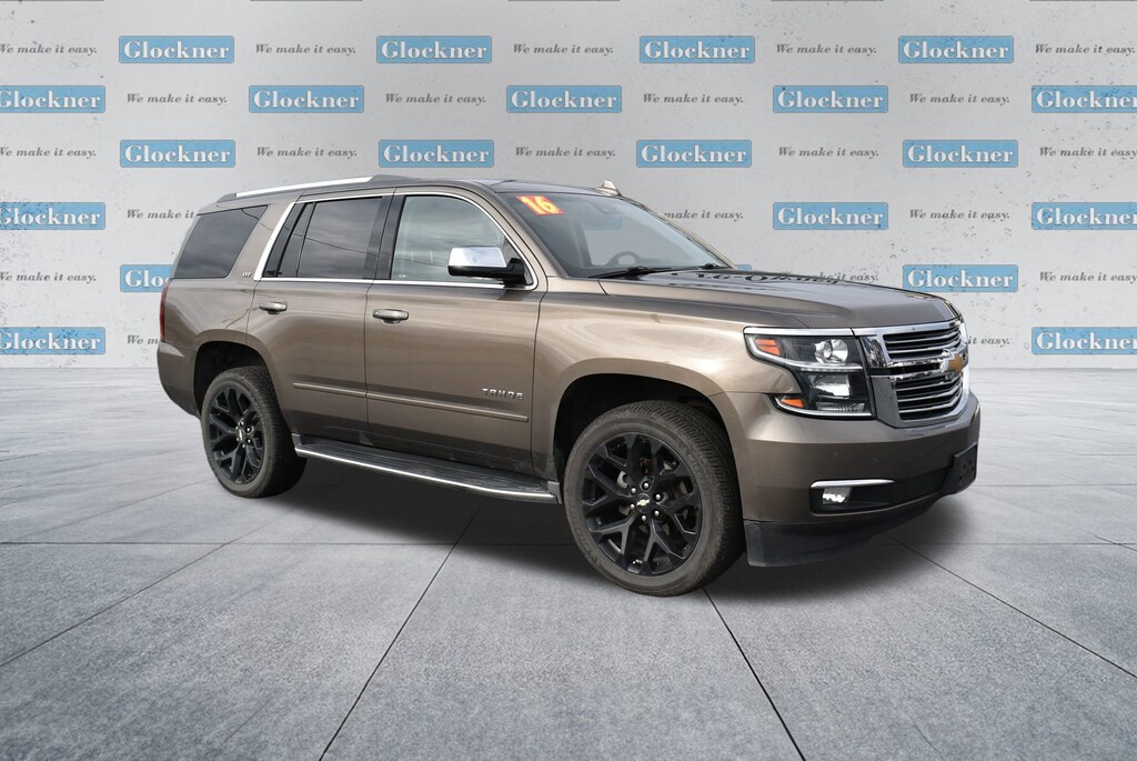 Glockner of Ironton is proud to offer this great-looking 2016 Chevrolet Tahoe in Brownstone Metallic. This 2016 Chevrolet Tahoe has passed our comprehensive inspection and comes with the following features; Magnetic Ride Control Suspension Package, 4WD, Cocoa/Dune Leather, 10 Speakers, 1st & 2nd Row Color-Keyed Carpeted Floor Mats, 3.08 Rear Axle Ratio, 3rd Row 60/40 Power Fold Split-Bench, 3rd row seats: split-bench, 4-Wheel Antilock Disc Brakes, 4-Wheel Disc Brakes, 5 12-Volt Auxiliary Power Outlets, 6-Way Power Front Passenger Seat Adjuster, ABS brakes, Adaptive suspension, Adjustable pedals, Air Conditioning, Alloy wheels, AM/FM radio: SiriusXM, Apple CarPlay, Auto High-beam Headlights, Auto-dimming door mirrors, Auto-Dimming Inside Rear-View Mirror, Auto-dimming Rear-View mirror, Automatic temperature control, Black Assist Steps w/Chrome Accent Strip, Bodyside moldings, Bose Centerpoint Premium 10-Speaker Surround Sound, Brake assist, Bumpers: body-color, CD player, Color-Keyed Carpeting Floor Covering, Compass, Delay-off headlights, Driver door bin, Driver Inboard & Front Passenger Airbags, Driver vanity mirror, Dual front impact airbags, Dual front side impact airbags, Electronic Cruise Control w/Set & Resume Speed, Electronic Stability Control, Emergency communication system: OnStar, Enhanced Driver Instrument Information Display, Exterior Parking Camera Rear, Floor Console, Fog Lamps, Forward Collision Alert Sensor Indicator, Front & Rear Parking Assist, Front anti-roll bar, Front Bucket Seats, Front Center Armrest, Front dual zone A/C, Front fog lights, Front Heated Reclining Bucket Seats, Front reading lights, Front wheel independent suspension, Fully automatic headlights, Garage door transmitter, Hands Free Power Liftgate, Heated & Cooled Driver & Front Passenger Seats, Heated 2nd Row Seats, Heated door mirrors, Heated front seats, Heated Leather Wrapped Steering Wheel, Heated rear seats, Heated steering wheel, High-Intensity Discharge Headlights, Illuminated entry, IntelliBeam Headlamps, Lane Departure Warning System, Lane Keep Assist, Low tire pressure warning, Memory seat, Memory Settings, Navigation System, Occupant sensing airbag, OnStar Basic Plan For 5 Years, Outside temperature display, Overhead airbag, Overhead console, Panic alarm, Passenger door bin, Passenger vanity mirror, Passive Entry System, Pedal memory, Perforated Leather-Appointed Seat Trim, Power door mirrors, Power driver seat, Power Liftgate, Power passenger seat, Power Release 2nd Row Bucket Seats, Power steering, Power Tilt & Telescoping Steering Column, Power windows, Power-Adjustable Accelerator & Brake Pedals, Power-Folding Heated Outside Mirrors, Premium audio system: Chevrolet MyLink, Push Button Keyless Start, Radio: Chevrolet MyLink w/Navigation/AM/FM Stereo, Rain sensing wipers, Rear air conditioning, Rear anti-roll bar, Rear Cross-Traffic Alert, Rear reading lights, Rear window defroster, Rear window wiper, Remote Keyless Entry, Remote keyless entry, Roof rack: rails only, Roof-Mounted Luggage Rack Side Rails, Safety Alert Driver Seat, Security system, Side Blind Zone Alert w/Lane Change Alert, Single-Slot CD/MP3 Player, SiriusXM Satellite Radio, Speed control, Speed-sensing steering, Split folding rear seat, Spoiler, Steering wheel memory, Steering wheel mounted audio controls, Tachometer, Telescoping steering wheel, Tilt steering wheel, Traction control, Trip computer, Turn signal indicator mirrors, Unauthorized Entry Electrical Theft Deterrent Sys., Universal Home Remote, Variably intermittent wipers, Ventilated front seats, Voltmeter, Wheels: 20 x 9 Polished-Aluminum, and Wireless Charging.4WD, Cocoa/Dune Leather.Odometer is 27573 miles below market average!Reviews:* Stout towing capacity; available nine-person seating capacity; quiet highway ride; impressive interior quality. Source: EdmundsAwards:* JD Power Initial Quality Study, JD Power APEAL Study * 2016 KBB.com Best Buy Award