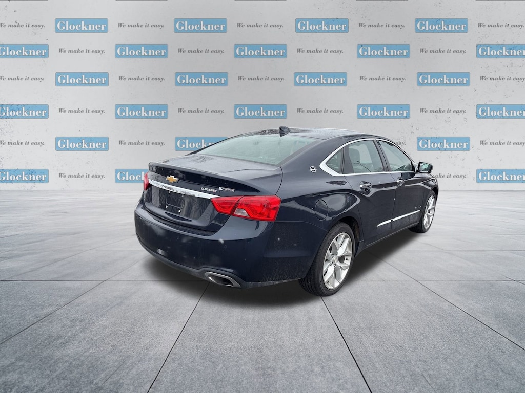 Glockner Chevrolet is proud to offer this great 2018 Chevrolet Impala in Blue Velvet Metallic. This 2018 Chevrolet Impala has passed our comprehensive inspection and comes with the following features; Preferred Equipment Group 2LZ, Impala Premier 2LZ, 4D Sedan, 3.6L V6 DI DOHC, FWD, Jet Black Leather, 11 Speakers, 4-Wheel Disc Brakes, 8-Way Power Driver Seat Adjuster, 8-Way Power Front Passenger Seat Adjuster, 8 Diagonal Color Infotainment Display, ABS brakes, Air Conditioning, Alloy wheels, AM/FM radio: SiriusXM, Apple CarPlay/Android Auto, Automatic temperature control, Blind spot sensor: Lane Change Alert with Side Blind Zone Alert warning, Bodyside moldings, Bose Centerpoint Surround Sound Premium System, Brake assist, Bumpers: body-color, Compass, Delay-off headlights, Driver door bin, Driver Power Lumbar Seat Adjuster, Driver vanity mirror, Dual front impact airbags, Dual front side impact airbags, Electronic Stability Control, Emergency communication system: OnStar and Chevrolet connected services capable, Exterior Parking Camera Rear, Four wheel independent suspension, Front anti-roll bar, Front Bucket Seats, Front Center Armrest, Front dual zone A/C, Front License Plate Bracket, Front Passenger Power Lumbar Seat Adjuster, Front reading lights, Fully automatic headlights, Garage door transmitter, Heated door mirrors, Heated Driver & Front Passenger Seats, Heated front seats, High-Intensity Discharge Headlights, Illuminated entry, Knee airbag, Low tire pressure warning, Navigation System, Occupant sensing airbag, Overhead airbag, Overhead console, Panic alarm, Passenger door bin, Passenger vanity mirror, Perforated Leather-Appointed Seat Trim, Power door mirrors, Power driver seat, Power passenger seat, Power steering, Power windows, Premium audio system: Chevrolet MyLink, Radio data system, Radio: Chevrolet MyLink AM/FM Stereo w/Navigation, Rear anti-roll bar, Rear Parking Sensors, Rear reading lights, Rear seat center armrest, Rear side impact airbag, Rear window defroster, Remote CD player, Remote keyless entry, Security system, Single-Slot CD/MP3 Player, SiriusXM Satellite Radio, Speed control, Speed-sensing steering, Split folding rear seat, Steering wheel mounted audio controls, Tachometer, Telescoping steering wheel, Tilt steering wheel, Traction control, Trip computer, Turn signal indicator mirrors, USB Port, Variably intermittent wipers, and Wheels: 19 Machined-Face Aluminum.Bluetooth / Hands-Free Calling, Rear View Back Up Camera, Impala Premier 2LZ, 4D Sedan, 3.6L V6 DI DOHC, FWD, Jet Black Leather.18/28 City/Highway MPGAwards:* 2018 KBB.com 10 Most Awarded Cars * 2018 KBB.com 5-Year Cost to Own Awards * 2018 KBB.com Best Family Sedans * 2018 KBB.com Best Buy Awards * 2018 KBB.com 10 Most Awarded Brands