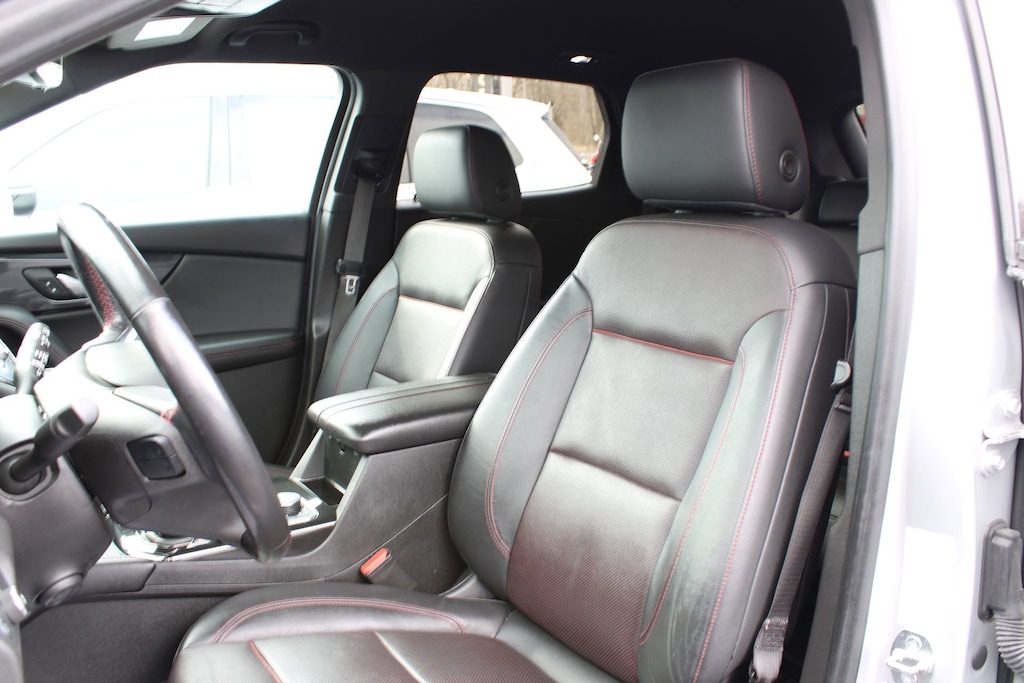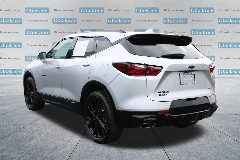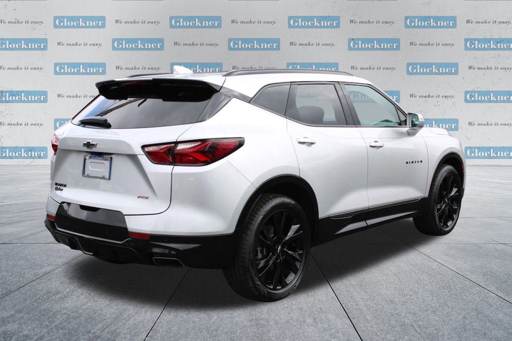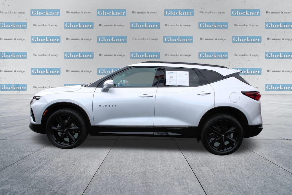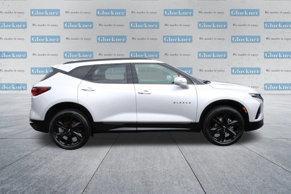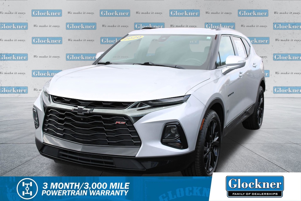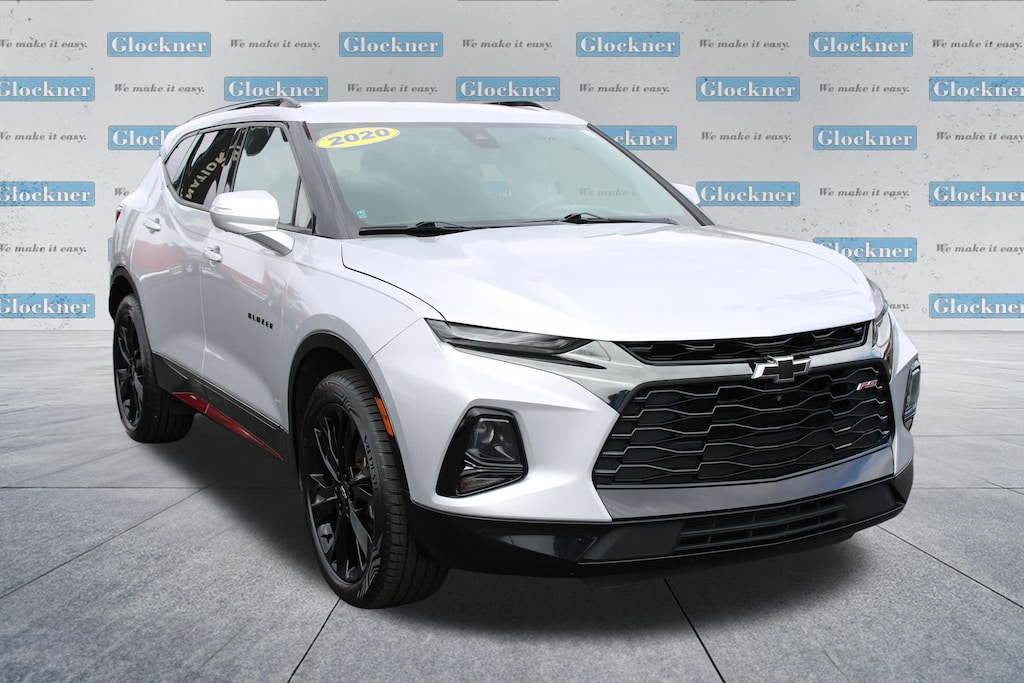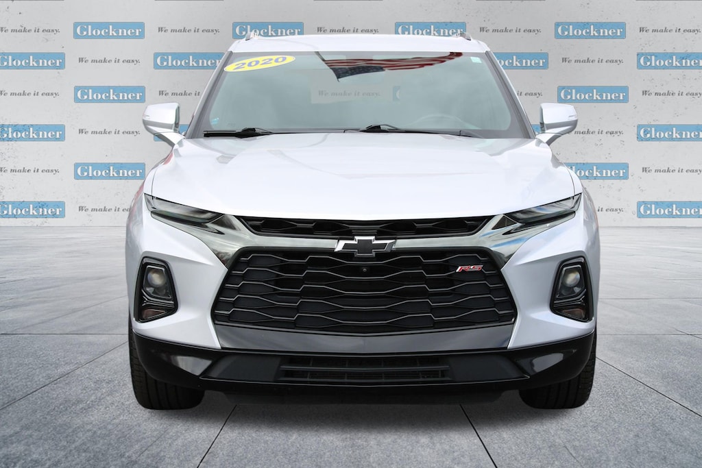 Glockner Chevrolet is proud to offer this fantastic-looking 2020 Chevrolet Blazer in Silver Ice Metallic. This 2020 Chevrolet Blazer has passed our comprehensive inspection and comes with the following features; Cargo Package (LPO) (Retractable Cargo Shade and Vertical Cargo Net (LPO)), Enhanced Convenience & Driver Confidence II Pkg (Advanced Adaptive Cruise Control, Enhanced Automatic Emergency Braking, Following Distance Indicator, Forward Collision Alert, Front Pedestrian Braking, HD Surround Vision, Heated Rear Outboard Seating Positions, IntelliBeam Headlamps, Lane Keep Assist w/Lane Departure Warning, Memory Settings For Driver Seat & Exterior Mirrors, Power Tilt & Telescoping Steering Column, Radio: Chevrolet Infotainment 3 Premium System, Rear Camera Mirror, Safety Alert Seat, SiriusXM w/360L, Ventilated Driver & Front Passenger Seats, and Wireless Charging), Preferred Equipment Group 1RS, Navigation System, 155 Amp Alternator, 3.49 Final Drive Axle Ratio, 4-Wheel Disc Brakes, 6 Speakers, 6-Speaker Audio System Feature, 6-Way Power Front Passenger Seat Adjuster, ABS brakes, Air Conditioning, Alloy wheels, AM/FM radio: SiriusXM, Apple CarPlay/Android Auto, Auto-dimming door mirrors, Auto-dimming Rear-View mirror, Automatic temperature control, Black Lug Nut & Wheel Lock Kit (LPO), Brake assist, Bumpers: body-color, Child-Seat-Sensing Airbag, Compass, Delay-off headlights, Driver door bin, Driver vanity mirror, Dual front impact airbags, Dual front side impact airbags, Electronic Stability Control, Emergency communication system: OnStar and Chevrolet connected services capable, Exterior Parking Camera Rear, Four wheel independent suspension, Front anti-roll bar, Front Bucket Seats, Front Center Armrest, Front dual zone A/C, Front reading lights, Fully automatic headlights, Garage door transmitter, Heated door mirrors, Heated Driver & Front Passenger Seats, Heated front seats, Heated steering wheel, High-Intensity Discharge Headlights, Illuminated entry, Integrated Cargo Liner (LPO), Knee airbag, Leather Shift Knob, Low tire pressure warning, Occupant sensing airbag, Outside temperature display, Overhead airbag, Overhead console, Panic alarm, Passenger door bin, Passenger vanity mirror, Perforated Leather-Appointed Seat Trim, Power door mirrors, Power driver seat, Power Liftgate, Power passenger seat, Power steering, Power windows, Radio data system, Radio: Chevrolet Infotainment 3 Plus System, Rear anti-roll bar, Rear reading lights, Rear seat center armrest, Rear window defroster, Rear window wiper, Remote keyless entry, Ride & Handling Suspension, Security system, Speed control, Speed-sensing steering, Split folding rear seat, Spoiler, Steering wheel mounted audio controls, Tachometer, Telescoping steering wheel, Tilt steering wheel, Traction control, Trip computer, Turn signal indicator mirrors, Variably intermittent wipers, Voltmeter, Wheels: 20 Dark Android Machined-Face Aluminum, and Wheels: 21 Gloss Black Aluminum.