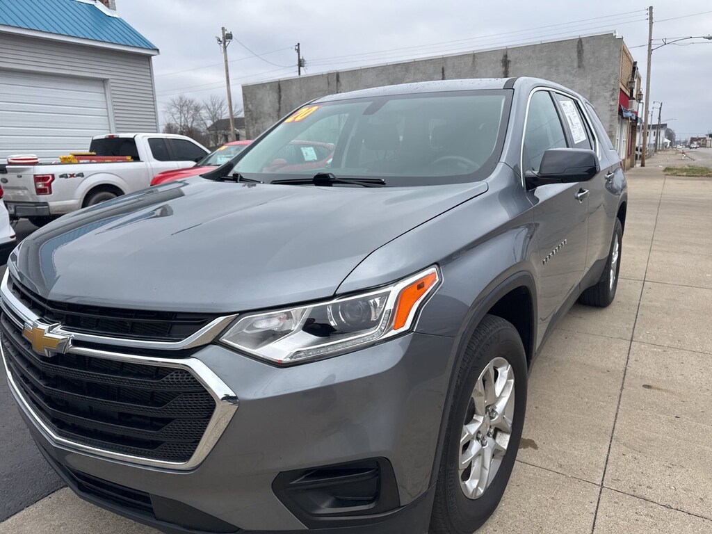 Glockner of Ironton is proud to offer this outstanding 2020 Chevrolet Traverse in Satin Steel Metallic. This 2020 Chevrolet Traverse has passed our comprehensive inspection and comes with the following features; Floor Liner Package (LPO) (1st & 2nd Row All-Weather Floor Liner (LPO), 3rd Row All-Weather Floor Liner (LPO), and Integrated Cargo Liner (LPO)), Front License Plate Bracket Mounting Package, Preferred Equipment Group 1LS, Glockner Certified Certified, 3.49 Axle Ratio, 3rd row seats: split-bench, 4-Wheel Disc Brakes, 6 Speakers, 8-Passenger Seating (2-3-3 Seating Configuration), ABS brakes, Air Conditioning, Alloy wheels, AM/FM radio, Apple CarPlay/Android Auto, Automatic temperature control, Brake assist, Bumpers: body-color, Compass, Delay-off headlights, Driver door bin, Driver vanity mirror, Dual front impact airbags, Dual front side impact airbags, Electronic Stability Control, Emergency communication system: OnStar and Chevrolet connected services capable, Four wheel independent suspension, Front anti-roll bar, Front Bucket Seats, Front Center Armrest, Front dual zone A/C, Front reading lights, Fully automatic headlights, Heated door mirrors, High-Intensity Discharge Headlights, Illuminated entry, Low tire pressure warning, Occupant sensing airbag, Outside temperature display, Overhead airbag, Overhead console, Panic alarm, Passenger door bin, Passenger vanity mirror, Power door mirrors, Power steering, Power windows, Premium Cloth Seat Trim, Radio data system, Radio: Chevrolet Infotainment System AM/FM Stereo, Rear air conditioning, Rear anti-roll bar, Rear reading lights, Rear window defroster, Rear window wiper, Remote keyless entry, Security system, Speed control, Speed-sensing steering, Split folding rear seat, Spoiler, Steering wheel mounted audio controls, Tachometer, Telescoping steering wheel, Tilt steering wheel, Traction control, Trip computer, Variably intermittent wipers, Voltmeter, and Wheels: 18 Bright Silver Painted Aluminum.