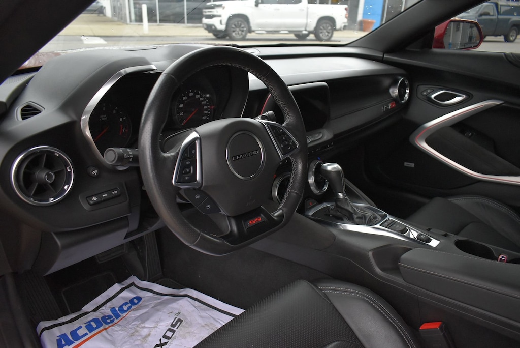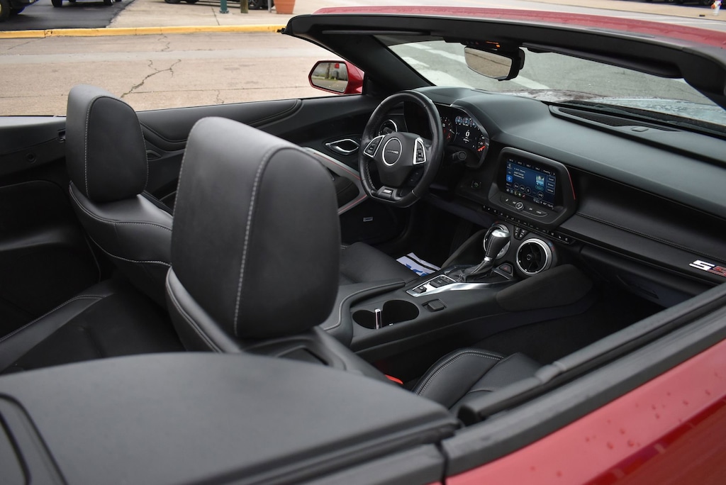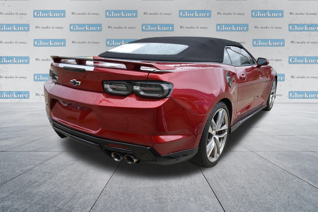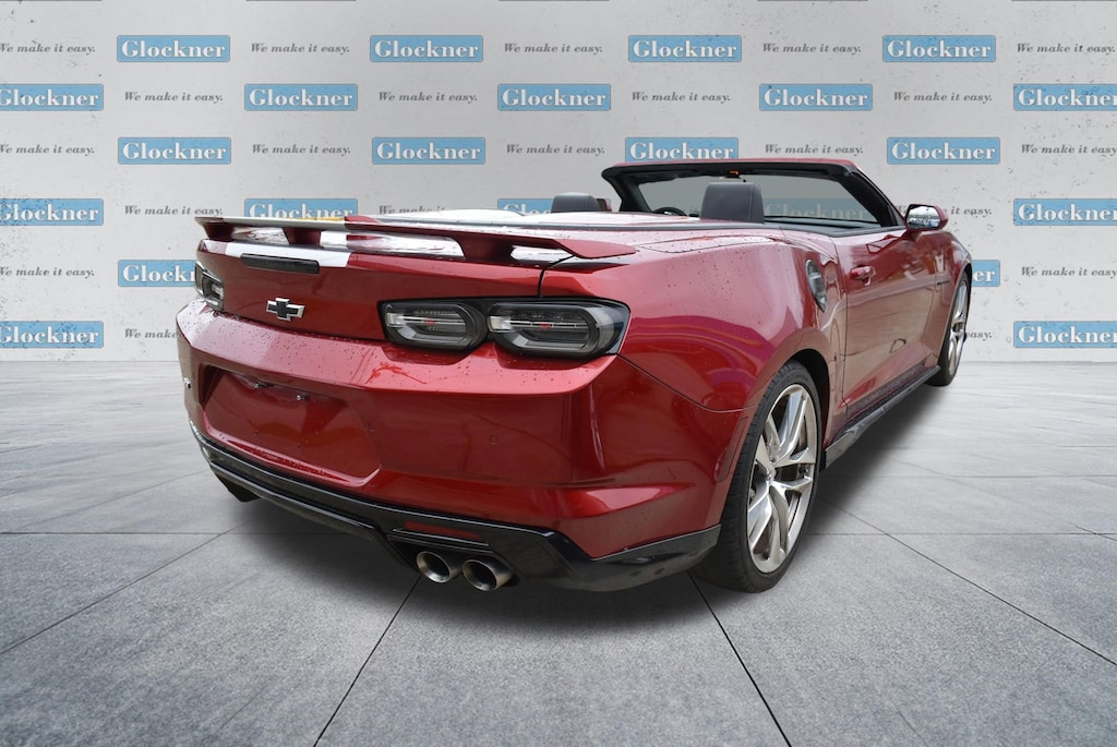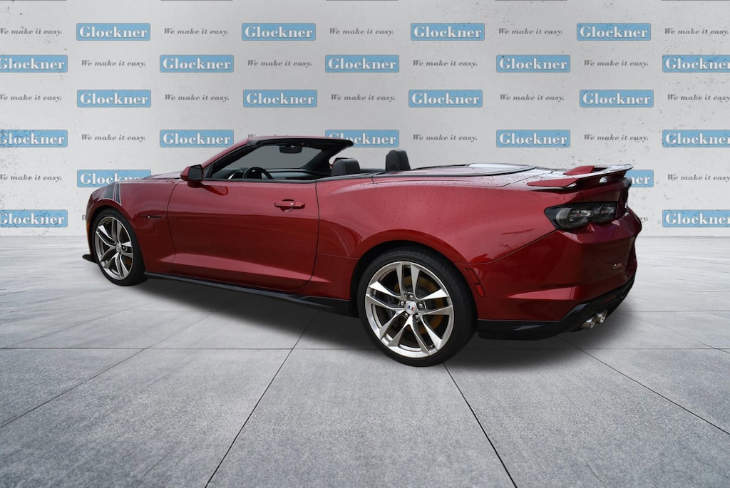 Certified. Certification Program Details: 12 Months or 12,000 miles Comprehensive Warranty. 5 Years or 100,000 miles Powertrain Warranty.Glockner of Ironton is proud to offer this good-looking 2021 Chevrolet Camaro in Wild Cherry Tintcoat. This 2021 Chevrolet Camaro has passed our comprehensive inspection and comes with the following features; Preferred Equipment Group 2SS, Wild Cherry Design Package 1 (Black Camaro Emblem Fender Badge, Black Metallic Hash Mark Stripes (LPO), Camaro Logo Wheel Center Caps (LPO), Premium Carpeted Floor Mats w/Camaro Logo (LPO), and Wheels: 20 x 8.5 Fr/20 x 9.5 Rr 5-Split Spoke), Wild Cherry Design Package 2 (Black Fuel Filler Door (LPO), Black Sueded Knee Pads (LPO), and Second Generation Ground Effects (LPO)), Glockner Certified Certified, 2.77 Rear Axle Ratio, 4-Wheel Disc Brakes, 6-Way Power Front Passenger Seat Adjuster, 7 Speakers, 8-Way Power Driver Seat Adjuster, ABS brakes, Air Conditioning, Alloy wheels, AM/FM radio: SiriusXM with 360L, Apple CarPlay/Android Auto, Auto-dimming door mirrors, Automatic temperature control, Bluetooth® For Phone, Bose Premium 7-Speaker Audio System Feature, Brake assist, Bumpers: body-color, Compass, Convertible roof lining, Custom Launch Control, Delay-off headlights, Driver door bin, Driver vanity mirror, Dual front impact airbags, Dual front side impact airbags, Dual Mode Exhaust, Electronic Stability Control, Exterior Parking Camera Rear, Four wheel independent suspension, Front anti-roll bar, Front Bucket Seats, Front Center Armrest, Front dual zone A/C, Front reading lights, Front Sport Bucket Seats, Fully automatic headlights, Glass rear window, Heads-Up Display, Heated door mirrors, Heated Driver & Front Passenger Seats, Heated front seats, Heated steering wheel, Illuminated entry, Knee airbag, Leather Shift Knob, Leather-Trimmed Seat Trim, Low tire pressure warning, Memory seat, Occupant sensing airbag, Outside temperature display, Paddle-Shift Manual Controls, Panic alarm, Passenger door bin, Passenger vanity mirror, Power convertible roof, Power door mirrors, Power driver seat, Power passenger seat, Power steering, Power windows, Premium audio system: Chevrolet Infotainment System, Radio data system, Radio: Chevrolet Infotainment 3 Plus System, Rear anti-roll bar, Rear window defroster, Remote keyless entry, Remote Vehicle Starter System, Security system, Silver Center Stripe, SiriusXM w/360L, Speed control, Speed-sensing steering, Spoiler, Steering wheel mounted audio controls, Tachometer, Telescoping steering wheel, Tilt steering wheel, Traction control, Transmission Oil Cooler, Trip computer, Variably intermittent wipers, Ventilated Driver & Front Passenger Seats, Ventilated front seats, Voltmeter, and Wheels: 20 x 8.5 Fr & 20 x 9.5 Rr 5-Spoke Alum.16/26 City/Highway MPG