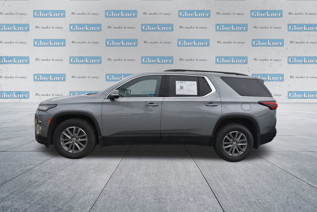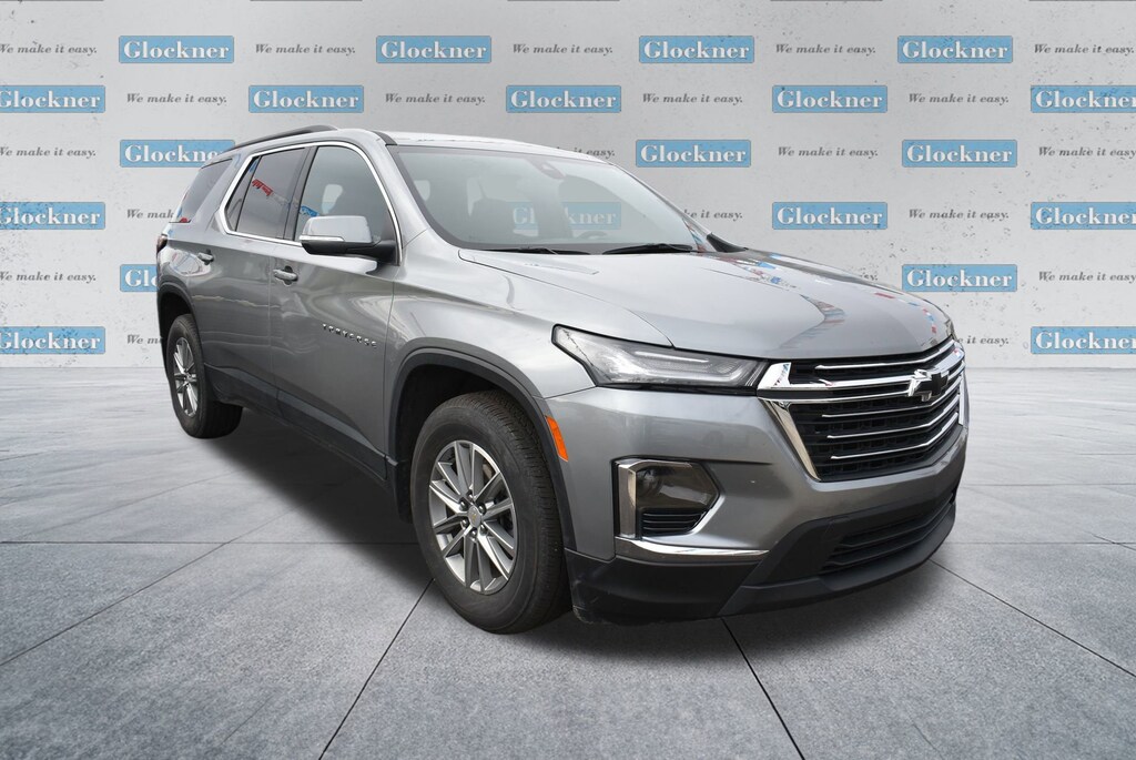Certified. Certification Program Details: 12 Months or 12,000 miles Comprehensive Warranty. 5 Years or 100,000 miles Powertrain Warranty.Glockner of Ironton is proud to offer this great 2023 Chevrolet Traverse in Sterling Gray Metallic. This 2023 Chevrolet Traverse has passed our comprehensive inspection and comes with the following features; Convenience & Driver Confidence Package (4.2 Multi-Color Enhanced Driver Instrument Display, Heated Driver & Front Passenger Seats, Radio: Chevrolet Infotainment 3 Plus System, Rear Power Liftgate, Remote Start, SiriusXM w/360L, and Universal Home Remote), Floor Liner Package (LPO) (1st & 2nd Row All-Weather Floor Liner (LPO), 3rd Row All-Weather Floor Liner (LPO), and Integrated Cargo Liner (LPO)), Preferred Equipment Group 1LT, Trailering Equipment (Heavy-Duty Cooling System and Trailering Assist Guidelines), Glockner Certified Certified, 2-Way Manual Front Passenger Seat Adjuster, 3.49 Axle Ratio, 3rd row seats: split-bench, 4-Wheel Disc Brakes, 6 Speakers, 6-Speaker Audio System Feature, 8-Way Power Driver Seat Adjuster, ABS brakes, Air Conditioning, Alloy wheels, AM/FM radio: SiriusXM, Apple CarPlay/Android Auto, Auto High-beam Headlights, Automatic temperature control, Black Bowtie, Black Roof Rails, Brake assist, Bumpers: body-color, Compass, Custom Molded Front & Rear Splash Guards (LPO), Delay-off headlights, Driver door bin, Driver vanity mirror, Dual front impact airbags, Dual front side impact airbags, Electronic Stability Control, Emergency communication system, Exterior Parking Camera Rear, Four wheel independent suspension, Front anti-roll bar, Front Bucket Seats, Front Center Armrest, Front dual zone A/C, Front reading lights, Fully automatic headlights, Heated door mirrors, Hitch Guidance w/Hitch View, Illuminated entry, Leather steering wheel, Low tire pressure warning, Not Equipped w/Rear Park Assist (060), Occupant sensing airbag, Outside temperature display, Overhead airbag, Overhead console, Panic alarm, Passenger door bin, Passenger vanity mirror, Power door mirrors, Power Driver Lumbar Control, Power driver seat, Power steering, Power windows, Premium Cloth Seat Trim, Radio data system, Radio: Chevrolet Infotainment System AM/FM Stereo, Rear air conditioning, Rear anti-roll bar, Rear reading lights, Rear window defroster, Rear window wiper, Remote keyless entry, Security system, SiriusXM Radio, Speed control, Speed-sensing steering, Spoiler, Steering wheel mounted audio controls, Tachometer, Telescoping steering wheel, Tilt steering wheel, Traction control, Trip computer, Turn signal indicator mirrors, Variably intermittent wipers, Voltmeter, and Wheels: 18 Bright Silver-Painted Aluminum.Odometer is 3757 miles below market average!18/27 City/Highway MPG