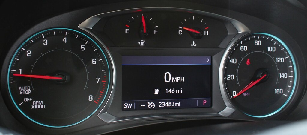 - Provides key vehicle information, such as vehicle speed, fuel range, average fuel economy, tire pressure, oil life, trip odometer and warning icons
