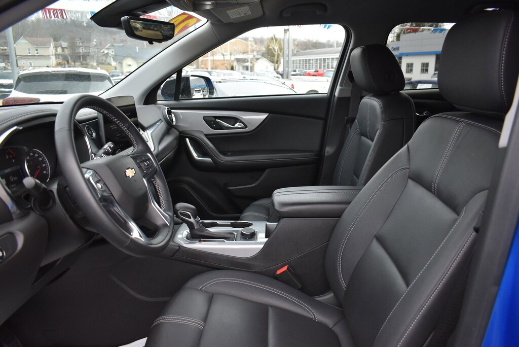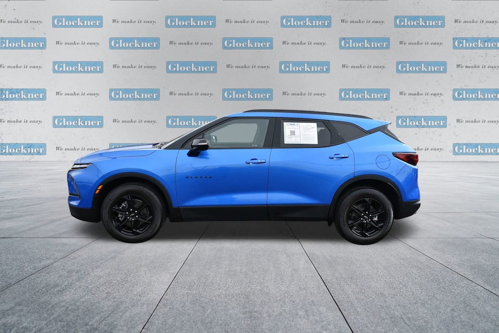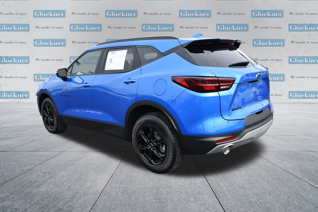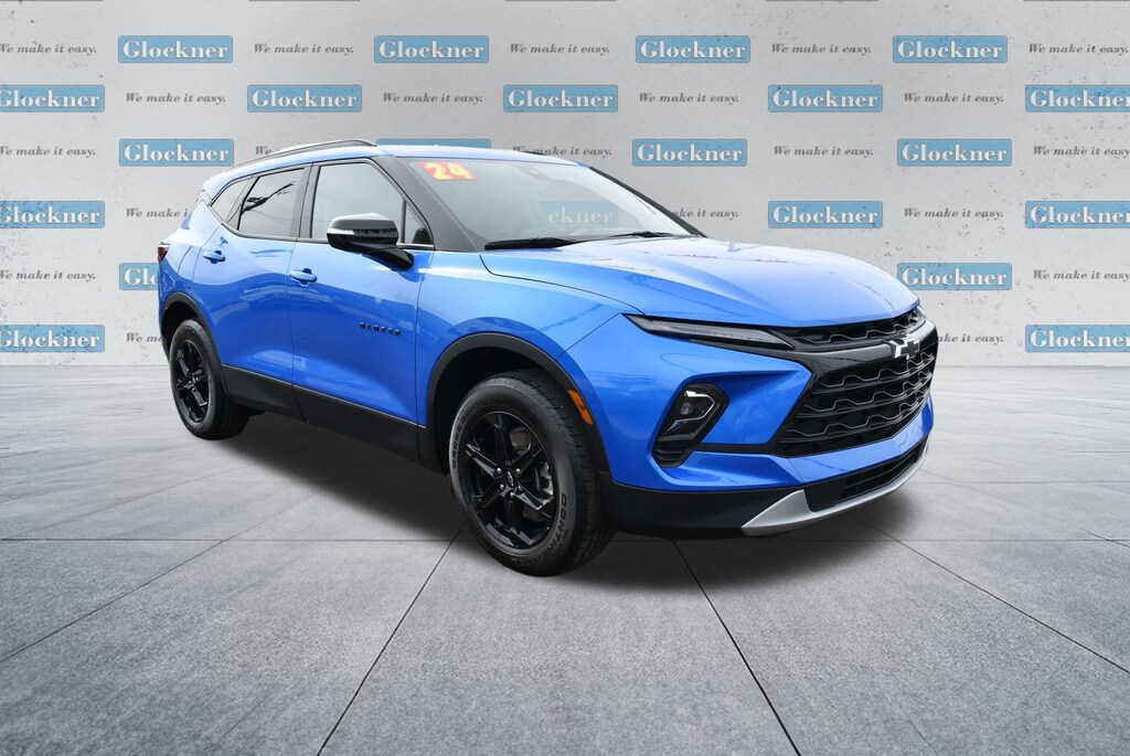 Glockner of Ironton is proud to offer this fantastic-looking 2024 Chevrolet Blazer in Riptide Blue Metallic. This 2024 Chevrolet Blazer has passed our comprehensive inspection and comes with the following features; Driver Confidence Package (Lane Change Alert w/Side Blind Zone Alert, Rear Cross Traffic Alert, and Rear Park Assist w/Audible Warning), Floor Liner Package (LPO) (1st & 2nd Row All-Weather Floor Liners (LPO) and Integrated Cargo Liner (LPO)), Midnight/Sport Edition (Front & Rear Black Bowties and Wheels: 18 High Gloss Black Painted Aluminum), Preferred Equipment Group 3LT (6-Way Power Front Passenger Seat Adjuster, Black Roof-Mounted Side Rails, Inside Rear-View Auto-Dimming Mirror, Outside Heated Power-Adjustable Body-Color Mirrors, Rear Power Programmable Liftgate, and Universal Home Remote), Sound & Technology Package (120-Volt Power Outlet, 2 USB Data Ports w/SD Card Reader, Adaptive Cruise Control, Bose Premium 8-Speaker Audio System Feature, Enhanced Automatic Emergency Braking, HD Surround Vision, Radio: Chevrolet Infotainment 3 Premium System, SiriusXM w/360L, and Wireless Charging), Trailering Equipment (Hitch Guidance), Glockner Certified Certified, 170 Amp Alternator, 3.47 Final Drive Axle Ratio, 3.49 Final Drive Axle Ratio, 4-Wheel Disc Brakes, 6 Speakers, 6-Speaker Audio System Feature, 8-Way Power Driver Seat Adjuster, ABS brakes, Air Conditioning, Alloy wheels, AM/FM radio: SiriusXM with 360L, Apple CarPlay/Android Auto, Auto High-beam Headlights, Auto-dimming door mirrors, Auto-dimming Rear-View mirror, Automatic temperature control, Brake assist, Bumpers: body-color, Child-Seat-Sensing Airbag, Compass, Delay-off headlights, Driver door bin, Driver vanity mirror, Dual front impact airbags, Dual front side impact airbags, Electronic Stability Control, Emergency communication system: OnStar and Chevrolet connected services capable, Four wheel independent suspension, Front anti-roll bar, Front Bucket Seats, Front Center Armrest, Front dual zone A/C, Front reading lights, Fully automatic headlights, Garage door transmitter, Heated door mirrors, Heated Driver & Front Passenger Seats, Heated front seats, Heavy-Duty Cooling System, Hitch View, Illuminated entry, Knee airbag, Leather Shift Knob, Leather steering wheel, Low tire pressure warning, Not Equipped w/Rear Park Assist, Occupant sensing airbag, Outside temperature display, Overhead airbag, Overhead console, Panic alarm, Passenger door bin, Passenger vanity mirror, Perforated Leather-Appointed Seat Trim, Power door mirrors, Power Driver Lumbar Control, Power driver seat, Power Liftgate, Power passenger seat, Power steering, Power windows, Premium audio system: Chevrolet Infotainment 3 Plus, Radio data system, Radio: Chevrolet Infotainment 3 Plus System, Rear anti-roll bar, Rear reading lights, Rear seat center armrest, Rear window defroster, Rear window wiper, Remote keyless entry, Ride & Handling Suspension, Security system, Speed control, Speed-sensing steering, Split folding rear seat, Spoiler, Steering wheel mounted audio controls, Tachometer, Telescoping steering wheel, Tilt steering wheel, Traction control, Trip computer, Turn signal indicator mirrors, Variably intermittent wipers, Voltmeter, and Wheels: 18 Grazen Metallic Aluminum.