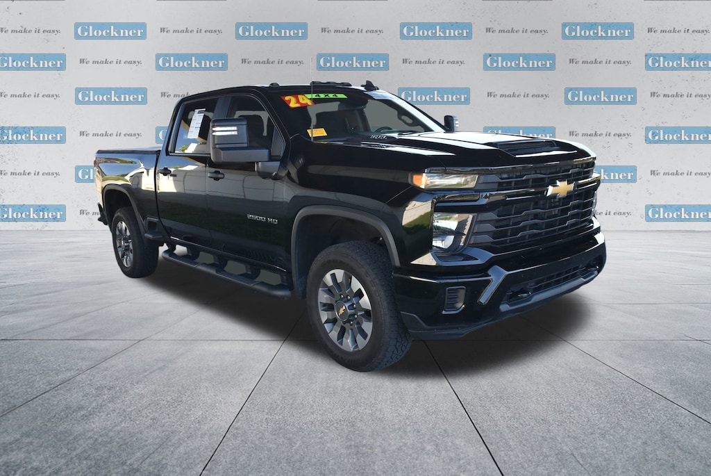 Glockner of Ironton is proud to offer this hard-working 2024 Chevrolet Silverado 2500HD in Black. This 2024 Chevrolet Silverado 2500HD has passed our comprehensive inspection and comes with the following features; Custom Convenience Package (10-Way Power Driver Seat Adjuster w/Lumbar, 120-Volt Bed Mounted Power Outlet, 120-Volt Interior Power Outlet, Dual Rear USB Ports (Charge Only), Electric Rear-Window Defogger, EZ Lift Power Lock & Release Tailgate, Integrated Trailer Brake Controller, LED Cargo Area Lighting, Remote Vehicle Starter System, and Unauthorized Entry Theft-Deterrent System), Custom Value Package (Auto-Dimming Inside Rear-View Mirror and Heated & Auto-Dimming Vertical Trailering Mirrors), CX Safety Package (Lane Change Alert w/Side Blind Zone Alert, Rear Cross Traffic Alert, and Rear Park Assist), Gooseneck/5th Wheel Prep Package, Hitch Package (LPO), Preferred Equipment Group 1CX (170 Amp Alternator, 2-Speed Electronic Shift Transfer Case, 3.5 Diagonal Monochromatic Display DIC, Black Mirror Caps, Bluetooth® For Phone, Chevrolet Connected Access Capable, Color-Keyed Carpeting Floor Covering, Compass, Deep-Tinted Glass, Electronic Cruise Control w/Set & Resume Speed, Front Rubberized Vinyl Floor Mats, HD Rear Vision Camera, Heated Vertical Trailering Mirrors, Locking Tailgate, Manual Tailgate Function w/No EZ Lift, Manual Tilt-Wheel Steering Column, OnStar & Chevrolet Connected Services Capable, Power Door Locks, Power Front Windows w/Driver Express Up/Down, Power Front Windows w/Passenger Express Down, Power Rear Windows w/Express Down, Push Button Start, Rear 60/40 Folding Bench Seat (Folds Up), Rear Rubberized Vinyl Floor Mats, Remote Keyless Entry, SiriusXM w/360L, Standard Tailgate, Wi-Fi Hotspot Capable, and Wireless Phone Projection), Suspension Package, Glockner Certified Certified, 10-Speed Automatic, 4WD, Black Cloth, 3.73 Rear Axle Ratio, 4-Wheel Disc Brakes, 4 Round Black Assist Steps (LPO), 6 Speakers, 6-Speaker Audio System, 720 Cold-Cranking Amps Heavy-Duty Battery, ABS brakes, Air Conditioning, All-Weather Floor Liners (LPO), Alloy wheels, AM/FM radio: SiriusXM with 360L, Apple CarPlay/Android Auto, Auto High-beam Headlights, Black Chevytec Spray-On Bedliner, Brake assist, Cloth Seat Trim, Delay-off headlights, Driver door bin, Dual front impact airbags, Dual front side impact airbags, Durabed Pickup Bed, Electronic Stability Control, Front 40/20/40 Split-Bench Seats w/Lockable Storage, Front anti-roll bar, Front Center Armrest w/Storage, Front reading lights, Front wheel independent suspension, Fully automatic headlights, Heated door mirrors, Illuminated entry, LED Smoked Amber Roof Marker Lamps, Low tire pressure warning, Not Equipped w/Rear USB Ports, Occupant sensing airbag, Outside temperature display, Overhead airbag, Overhead console, Panic alarm, Passenger door bin, Passenger vanity mirror, Power door mirrors, Power steering, Power windows, Premium audio system: Chevrolet Infotainment 3, Radio: Chevrolet Infotainment 3 System, Rear reading lights, Rear step bumper, Remote keyless entry, Speed control, Split folding rear seat, Tachometer, Tilt steering wheel, Traction control, Trip computer, Turn signal indicator mirrors, Variably intermittent wipers, Voltmeter, and Wheels: 20 10-Spoke Machined Aluminum.