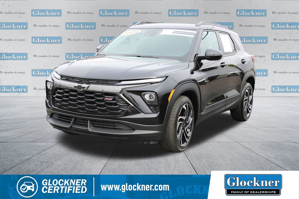 Glockner Chevrolet is proud to offer this great 2024 Chevrolet TrailBlazer in Mosaic Black Metallic. This 2024 Chevrolet TrailBlazer has passed our comprehensive inspection and comes with the following features; Preferred Equipment Group 1RS, Glockner Certified Certified, Heated Driver & Front Passenger Seats, Heated front seats, 1 Type-A & 1 Type-C USB Ports, 11 Diagonal HD Color Touchscreen, 2-Way Power Driver Lumbar Seat Adjuster, 4-Way Manual Front Passenger Seat Adjuster, 4-Wheel Disc Brakes, 5.45 Final Drive Axle Ratio, 6 Speakers, 6-Speaker Audio System Feature, 8-Way Power Driver Seat Adjuster, ABS brakes, Air Conditioning, Alloy wheels, AM/FM radio: SiriusXM, Auto High-beam Headlights, Brake assist, Bumpers: body-color, Chevrolet Connected Access Capable, Compass, Delay-off headlights, Driver door bin, Driver vanity mirror, Dual front impact airbags, Dual front side impact airbags, Electronic Stability Control, Emergency communication system: OnStar and Chevrolet connected services capable, Evotex Seat Trim, Exterior Parking Camera Rear, Flat-Folding Front Passenger Seatback, Front anti-roll bar, Front Bucket Seats, Front Center Armrest, Front reading lights, Front wheel independent suspension, Fully automatic headlights, Heated door mirrors, Heated steering wheel, Illuminated entry, Knee airbag, Low tire pressure warning, Mosaic Black Metallic Roof, Occupant sensing airbag, Overhead airbag, Overhead console, Panic alarm, Passenger door bin, Passenger vanity mirror, Power door mirrors, Power driver seat, Power steering, Power windows, Radio data system, Radio: AM/FM Stereo Audio System, Rear seat center armrest, Rear side impact airbag, Rear window defroster, Rear window wiper, Remote keyless entry, Ride & Handling Suspension, Security system, SiriusXM, Speed control, Split folding rear seat, Spoiler, Steering wheel mounted audio controls, Tachometer, Telescoping steering wheel, Tilt steering wheel, Traction control, Trip computer, Variably intermittent wipers, Wheels: 19 High Gloss Black Machined Aluminum, and Wireless Apple CarPlay/Android Auto.