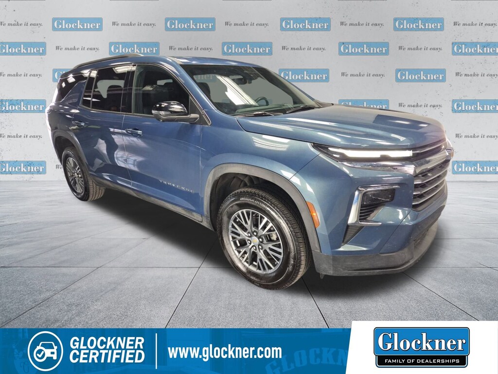 Certified. Certification Program Details: 12 Months or 12,000 miles Comprehensive Warranty. 5 Years or 100,000 miles Powertrain Warranty.Glockner of Ironton is proud to offer this outstanding-looking 2024 Chevrolet Traverse in Lakeshore Blue Metallic. This 2024 Chevrolet Traverse has passed our comprehensive inspection and comes with the following features; Preferred Equipment Group 2LT, Glockner Certified Certified, AWD, 3rd row seats: split-bench, 4-Way Manual Front Passenger Seat Adjuster, 4-Wheel Disc Brakes, 6 Speakers, 6-Speaker Audio System Feature, 8-Way Power Driver Seat Adjuster, ABS brakes, Air Conditioning, Alloy wheels, AM/FM radio: SiriusXM with 360L, Apple CarPlay/Android Auto, Auto High-beam Headlights, Automatic temperature control, Brake assist, Bumpers: body-color, Compass, Delay-off headlights, Driver 4-Way Power Lumbar Seat Adjuster, Driver door bin, Driver vanity mirror, Dual front impact airbags, Dual front side impact airbags, Electronic Stability Control, Emergency communication system, Exterior Parking Camera Rear, Four wheel independent suspension, Front anti-roll bar, Front Bucket Seats, Front Center Armrest, Front dual zone A/C, Front reading lights, Fully automatic headlights, Heated door mirrors, Heated front seats, Heated steering wheel, Illuminated entry, Low tire pressure warning, Navigation System, Occupant sensing airbag, Outside temperature display, Overhead airbag, Overhead console, Panic alarm, Passenger door bin, Passenger vanity mirror, Power door mirrors, Power driver seat, Power Liftgate, Power steering, Power windows, Premium Cloth Seat Trim, Radio data system, Radio: 17.7 Diagonal Display, Rear air conditioning, Rear anti-roll bar, Rear reading lights, Rear window defroster, Rear window wiper, Remote keyless entry, Security system, SiriusXM w/360L, Speed control, Speed-sensing steering, Spoiler, Steering wheel mounted audio controls, Tachometer, TBD Axle Ratio, Telescoping steering wheel, Tilt steering wheel, Traction control, Trip computer, Turn signal indicator mirrors, Variably intermittent wipers, Voltmeter, and Wheels: 18 Grazen Metallic Machined-Face Aluminum.AWD.