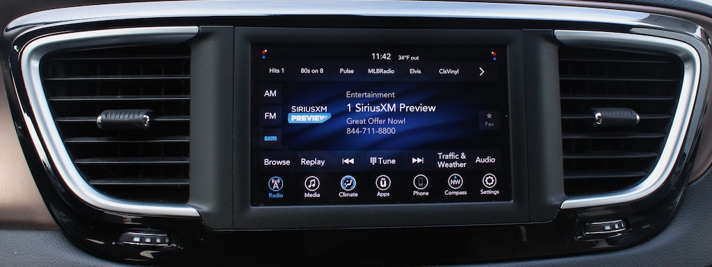 Step inside and you'll be greeted by a well-appointed interior with comfortable seating for up to eight passengers. The Uconnect 4 infotainment system with a 7-inch display keeps you connected and entertained, while the rear air conditioning ensures everyone rides in comfort. The split-folding third-row seat and available power-sliding doors provide exceptional versatility, allowing you to easily adapt to your changing needs.