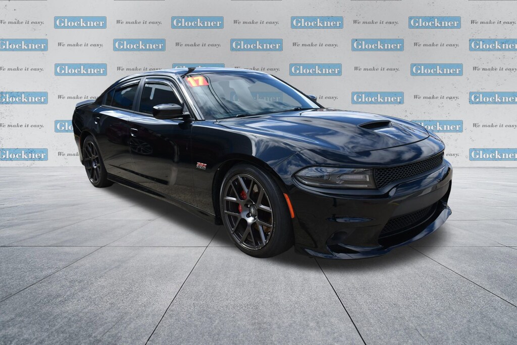 Glockner of Ironton is proud to offer this good-looking 2017 Dodge Charger in Pitch Black Clearcoat. This 2017 Dodge Charger has passed our comprehensive inspection and comes with the following features; Driver Confidence Group (ParkSense Rear Park Assist System), Quick Order Package 21W R/T Scat Pack, Black Leather, 4-Wheel Disc Brakes, 5-Year SiriusXM Traffic Service, 5-Year SiriusXM Travel Link Service, 6 Speakers, 8.4 Touchscreen Display, ABS brakes, Air Conditioning, Alloy wheels, AM/FM radio: SiriusXM, Anti-whiplash front head restraints, Apple CarPlay, Apple CarPlay/Android Auto, Auto-Dimming Exterior Driver Mirror, Auto-dimming Rear-View mirror, Automatic temperature control, Brake assist, Bumpers: body-color, Cloth Performance Seats, Compass, Delay-off headlights, Driver door bin, Driver vanity mirror, Dual front impact airbags, Dual front side impact airbags, Electronic Stability Control, Emergency communication system: Uconnect Access, Four wheel independent suspension, Front anti-roll bar, Front Bucket Seats, Front Center Armrest, Front dual zone A/C, Front fog lights, Front reading lights, Fully automatic headlights, Garage door transmitter: HomeLink, Google Android Auto, GPS Antenna Input, HD Radio, Illuminated entry, Integrated Center Stack Radio, Integrated Voice Command w/Bluetooth, Leather Shift Knob, Low tire pressure warning, Occupant sensing airbag, Outside temperature display, Overhead airbag, Overhead console, Panic alarm, ParkView Rear Back-Up Camera, Passenger door bin, Passenger vanity mirror, Power door mirrors, Power driver seat, Power Driver/Passenger 4-Way Lumbar Adjust, Power passenger seat, Power steering, Power Sunroof, Power windows, Radio data system, Radio: Uconnect 4C Nav w/8.4 Display, Radio: Uconnect 4C w/8.4 Display, Rear anti-roll bar, Rear reading lights, Rear seat center armrest, Rear window defroster, Remote keyless entry, Rhombi 2-Pc Wheel Center Cap, Security system, SiriusXM Satellite Radio, SiriusXM Traffic Plus, SiriusXM Travel Link, Speed control, Speed-Sensitive Wipers, Split folding rear seat, Spoiler, Steering wheel mounted audio controls, Tachometer, Telescoping steering wheel, Tilt steering wheel, Traction control, Trip computer, Variably intermittent wipers, Wheels: 20 x 9.0 Alum Machined Face/Satin Black, and Wheels: 20 x 9.0 Forged/Painted Aluminum.Black Leather.Odometer is 15410 miles below market average!Awards:* 2017 KBB.com 10 Most Comfortable Cars Under $30,000