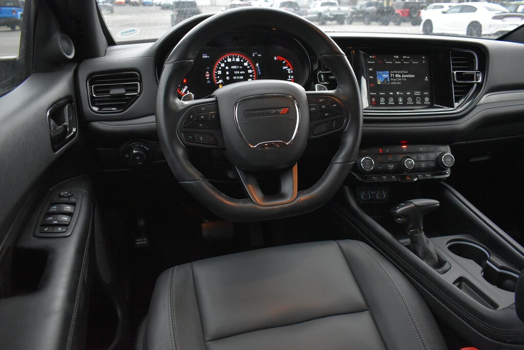 Glockner Chrysler Dodge Jeep Ram of Ashland is proud to offer this charming 2022 Dodge Durango in DB Black Crystal Clearcoat. This 2022 Dodge Durango has passed our comprehensive inspection and comes with the following features; Blacktop Package (Gloss Black Badges, Gloss Black Exterior Mirrors, GT Gloss Black Badging, Performance Hood, Satin Black Dodge Tail Lamp Badge, and Wheels: 20" x 8.0" Black Noise Aluminum), Quick Order Package 2BD GT, Glockner Certified Certified, AWD, 3.45 Rear Axle Ratio, 3rd row seats: split-bench, 4-Wheel Disc Brakes, 6 Speakers, ABS brakes, Air Conditioning, Alloy wheels, AM/FM radio: SiriusXM, Anti-whiplash front head restraints, Apple CarPlay, Apple CarPlay/Android Auto, Auto-dimming Rear-View mirror, Automatic temperature control, Brake assist, Bumpers: body-color, Cloth Bucket Seats w/Shift Insert, Compass, Delay-off headlights, Driver door bin, Driver vanity mirror, Dual front impact airbags, Dual front side impact airbags, Electronic Stability Control, For More Info, Call 800-643-2112, Four wheel independent suspension, Front anti-roll bar, Front Bucket Seats, Front Center Armrest w/Storage, Front dual zone A/C, Front fog lights, Front reading lights, Fully automatic headlights, Google Android Auto, GPS Antenna Input, Heated door mirrors, Heated front seats, Heated steering wheel, Illuminated entry, Integrated Center Stack Radio, Integrated Voice Command w/Bluetooth, Knee airbag, Leather steering wheel, Low tire pressure warning, Occupant sensing airbag, Outside temperature display, Overhead airbag, Overhead console, Panic alarm, ParkView Rear Back-Up Camera, Passenger door bin, Passenger vanity mirror, Power door mirrors, Power driver seat, Power Liftgate, Power steering, Power windows, Radio data system, Radio: Uconnect 4 w/8.4" Display, Rear air conditioning, Rear anti-roll bar, Rear reading lights, Rear seat center armrest, Rear window defroster, Rear window wiper, Remote keyless entry, SiriusXM Radio Service, SiriusXM Satellite Radio, Speed control, Speed-sensing steering, Speed-Sensitive Wipers, Split folding rear seat, Spoiler, Steering wheel mounted audio controls, Tachometer, Telescoping steering wheel, Tilt steering wheel, Traction control, Trip computer, USB Host Flip, Variably intermittent wipers, Voltmeter, and Wheels: 20" x 8.0" Fine Silver.