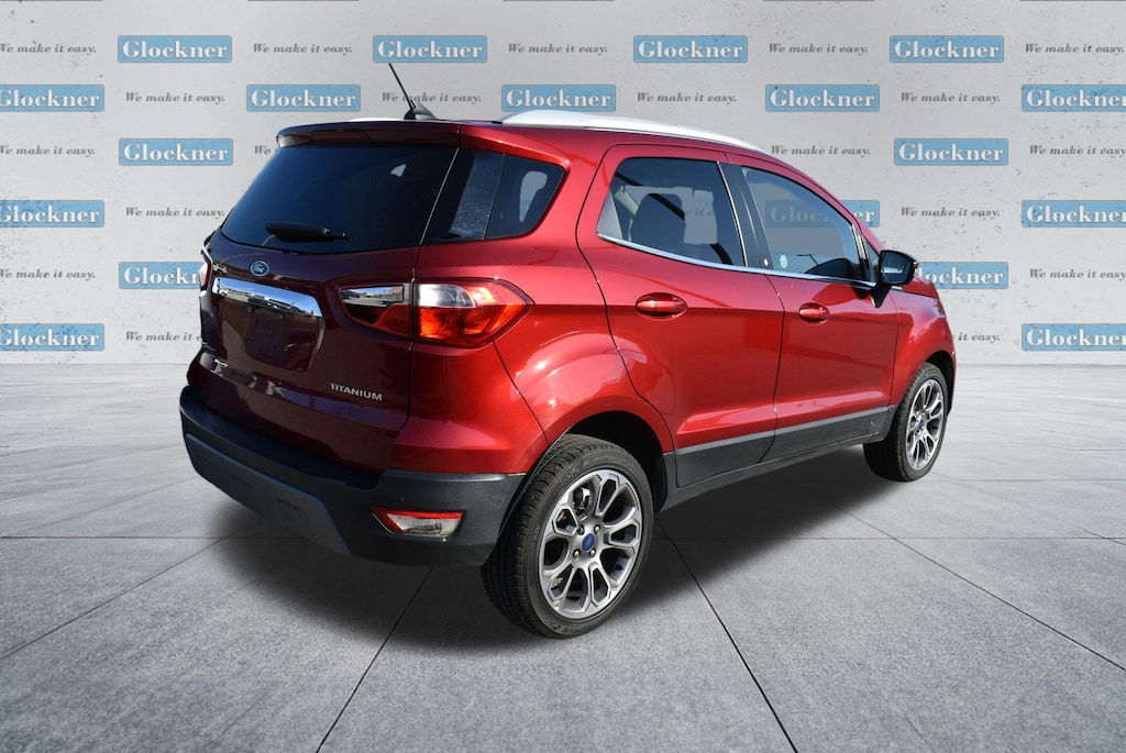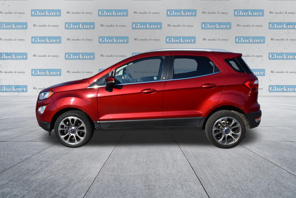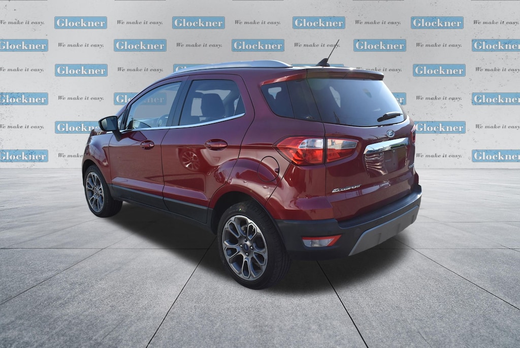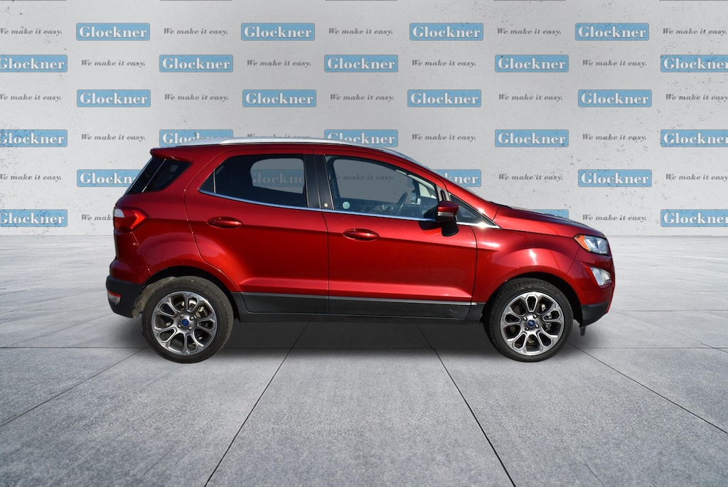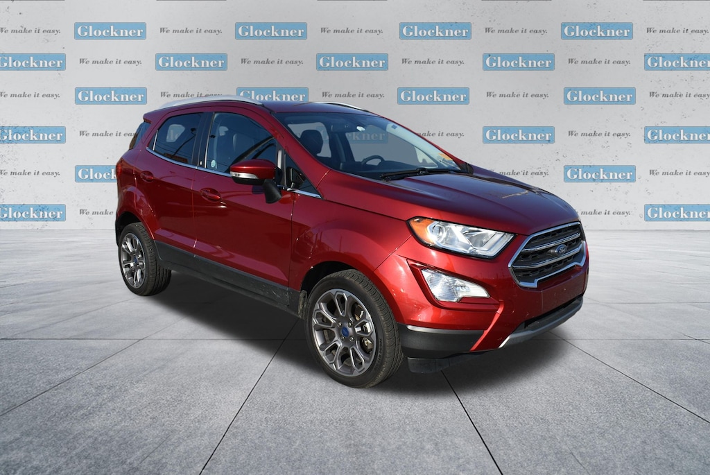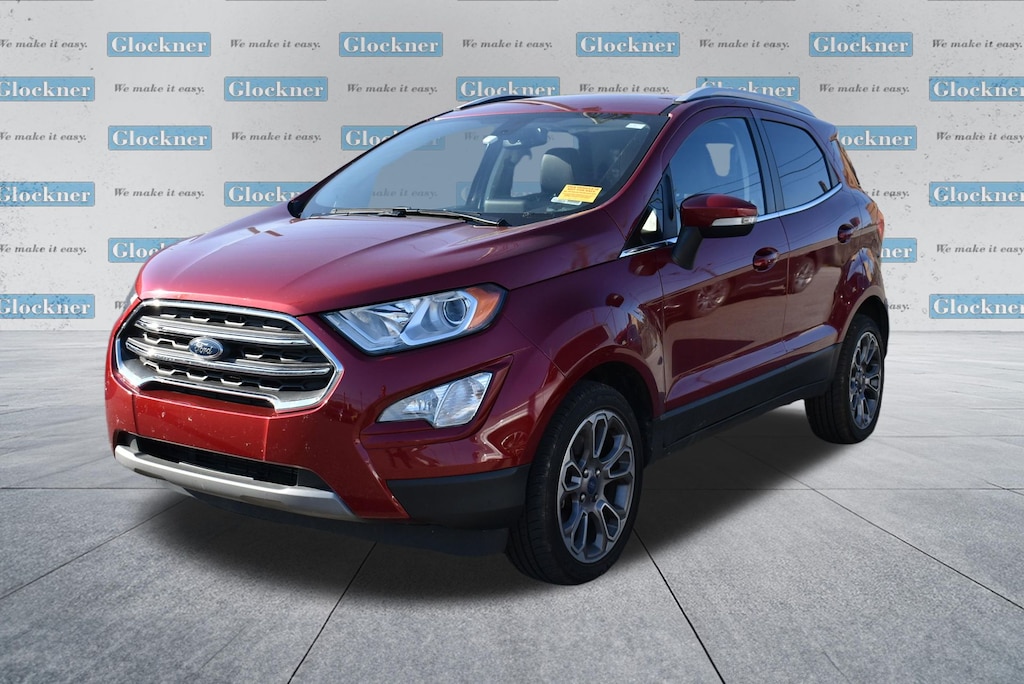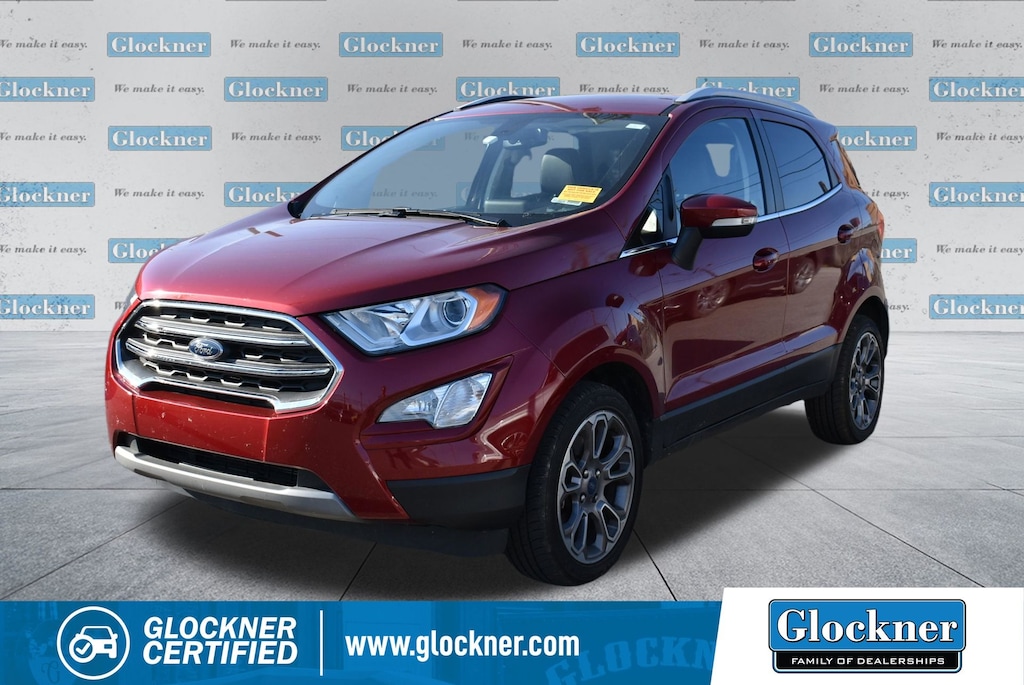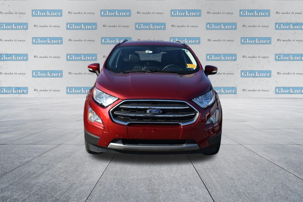 Glockner Chrysler Dodge Jeep Ram of Ashland is proud to offer this superb-looking 2021 Ford EcoSport in Ruby Red. This 2021 Ford EcoSport has passed our comprehensive inspection and comes with the following features; Equipment Group 400A, Glockner Certified Certified, 10 Speakers, 3.44 Axle Ratio, 4-Wheel Disc Brakes, ABS brakes, ActiveX Seating Material Heated Front Bucket Seats, Air Conditioning, Alloy wheels, AM/FM radio: SiriusXM, Auto-dimming Rear-View mirror, Automatic temperature control, Brake assist, Bumpers: body-color, Compass, Delay-off headlights, Driver door bin, Driver vanity mirror, Dual front impact airbags, Dual front side impact airbags, Electronic Stability Control, Emergency communication system: SYNC 3 911 Assist, Exterior Parking Camera Rear, Front anti-roll bar, Front Bucket Seats, Front Center Armrest, Front fog lights, Front reading lights, Front wheel independent suspension, Fully automatic headlights, Heated door mirrors, Heated front seats, Heated steering wheel, Illuminated entry, Knee airbag, Leather Shift Knob, Leather steering wheel, Low tire pressure warning, Navigation System, Occupant sensing airbag, Outside temperature display, Overhead airbag, Overhead console, Panic alarm, Passenger door bin, Passenger vanity mirror, Power door mirrors, Power driver seat, Power moonroof, Power steering, Power windows, Radio data system, Radio: AM/FM/MP3 Stereo, Rain sensing wipers, Rear Parking Sensors, Rear seat center armrest, Rear side impact airbag, Rear window defroster, Rear window wiper, Remote keyless entry, Roof rack: rails only, Security system, SiriusXM Radio, SiriusXM Traffic & Travel Link, Speed control, Speed-sensing steering, Split folding rear seat, Steering wheel mounted audio controls, SYNC 3 Communications & Entertainment System, Tachometer, Telescoping steering wheel, Tilt steering wheel, Traction control, Trip computer, Turn signal indicator mirrors, Variably intermittent wipers, and Wheels: 17" Premium Dark Stainless-Painted.