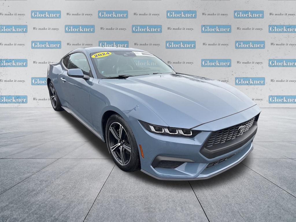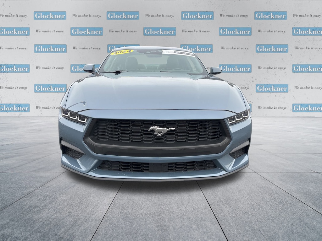 Glockner Chevrolet is proud to offer this great-looking 2024 Ford Mustang in Vapor Blue Metallic. This 2024 Ford Mustang has passed our comprehensive inspection and comes with the following features; Glockner Certified Certified, 4-Wheel Disc Brakes, ABS brakes, Air Conditioning, Alloy wheels, AM/FM Stereo, Auto High-beam Headlights, Automatic temperature control, Brake assist, Bumpers: body-color, Compass, Delay-off headlights, Driver door bin, Driver vanity mirror, Dual front impact airbags, Dual front side impact airbags, Electronic Stability Control, Emergency communication system: 911 Assist, Exterior Parking Camera Rear, Four wheel independent suspension, Front anti-roll bar, Front Bucket Seats, Front Center Armrest, Front reading lights, Fully automatic headlights, Illuminated entry, Knee airbag, Leather Shift Knob, Low tire pressure warning, Occupant sensing airbag, Outside temperature display, Overhead airbag, Overhead console, Panic alarm, Passenger door bin, Passenger vanity mirror, Power door mirrors, Power steering, Power windows, Radio data system, Rain sensing wipers, Rear anti-roll bar, Rear Parking Sensors, Rear window defroster, Remote keyless entry, Speed control, Speed-sensing steering, Speed-Sensitive Wipers, Split folding rear seat, Sport steering wheel, Steering wheel mounted audio controls, SYNC 4.0 QNX, Tachometer, Telescoping steering wheel, Tilt steering wheel, Traction control, Trip computer, Variably intermittent wipers, Voltmeter, and Wheels: 18 x 8 Machined-Face Aluminum.