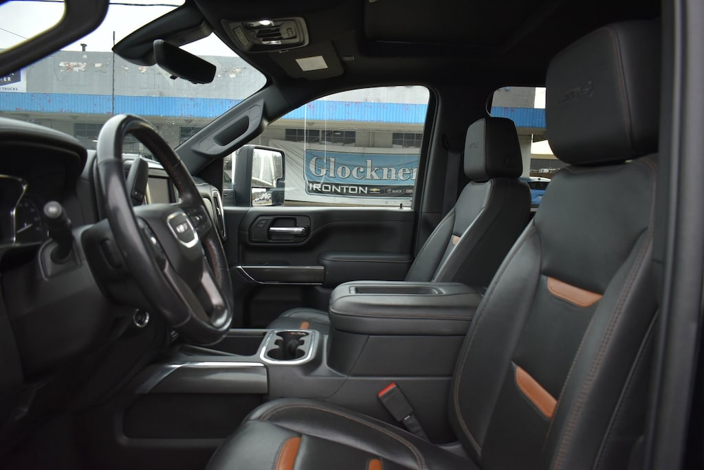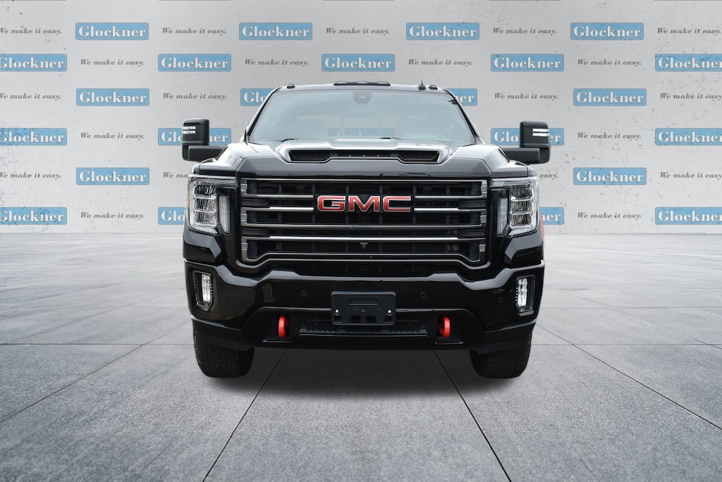 Glockner of Ironton is proud to offer this fantastic 2021 GMC Sierra 2500HD in Onyx Black. This 2021 GMC Sierra 2500HD has passed our comprehensive inspection and comes with the following features; AT4 Preferred Package (Bed View Camera w/2 Trailer Camera Provisions, Bose Premium 7 Speaker Sound System, HD Surround Vision, LED Smoked Amber Roof Marker Lamps, Power Sliding Rear Window w/Defogger, Radio: Premium GMC Infotainment Sys w/Navigation, Universal Home Remote, and Wireless Charging), AT4 Premium Plus Package (20 Machined Aluminum Wheels and Power Sunroof), Driver Alert Package I (Lane Change Alert w/Side Blind Zone Alert, Rear Cross Traffic Alert, and Ultrasonic Front & Rear Park Assist), Driver Alert Package II (Automatic Emergency Braking, Following Distance Indicator, Forward Collision Alert, IntelliBeam Automatic High Beam On/Off, Lane Departure Warning System, and Safety Alert Seat), Preferred Equipment Group 4SB (12-Volt Rear Auxiliary Power Outlet, 120-Volt Bed Mounted Power Outlet, 120-Volt Instrument Panel Power Outlet, 2 USB Ports, 2 USB Ports (1st Row), 2-Speed Active Transfer Case, 2nd Row Dual USB Charge-Only Ports, 4.2 Diagonal Color Display Driver Info Center, 4G LTE Wi-Fi Hotspot Capable, Compass Located In Instrument Cluster, Deep-Tinted Glass, Electric Rear-Window Defogger, Electrical Lock Control Steering Column, Floor-Mounted Center Console, Front Prem Floor Liners w/Removable Carpet Insert, GMC Connected Access Capable, HD Rear Vision Camera, Heated & Ventilated Front Bucket Seats, Heated 2nd Row Outboard Seats, Heated Driver & Front Outboard Passenger Seats, Integrated Trailer Brake Controller, Keyless Open & Start, LED Cargo Area Lighting, Manual Tilt-Wheel/Telescoping Steering Column, OnStar & GMC Connected Services Capable, Painted Black Surround Grille, Power Door Locks, Power Front Passenger Windows w/Express Up/Down, Power Rear Windows w/Express Down, Power Windows w/Driver Express Up/Down, Rear Prem Floor Liners w/Removable Carpet Insert, Rear Wheelhouse Liners, Red Recovery Hooks, Remote Vehicle Starter System, Spray-On Pickup Box Bed Liner w/AT4 Logo, Steering Wheel Audio Controls, Unauthorized Entry Theft-Deterrent System, and Wireless Phone Projection), Technology Package (8 Multicolor Driver Information Center, Inside Rearview Auto-Dimming Rear Camera Mirror, and Multicolor 15 Diagonal Head-Up Display), X31 Off-Road Package (Hill Descent Control), 6-Speed Automatic, 4WD, Jet Black With Kalahari Accents Leather, 10-Way Power Driver Seat Adjuster w/Lumbar, 10-Way Power Passenger Seat Adjuster w/Lumbar, 18 Machined Aluminum Wheels, 3.73 Rear Axle Ratio, 4-Wheel Disc Brakes, 5th Wheel & Gooseneck Trailer Wiring Provisions, 6 Speakers, 6-Speaker Audio System Feature, ABS brakes, Air Conditioning, Alloy wheels, AM/FM radio: SiriusXM with 360L, Apple CarPlay/Android Auto, Auto-dimming door mirrors, Auto-dimming Rear-View mirror, Automatic temperature control, Brake assist, Bumpers: body-color, Compass, Delay-off headlights, Driver door bin, Driver Memory, Driver vanity mirror, Dual front impact airbags, Dual front side impact airbags, Electronic Stability Control, Front anti-roll bar, Front Bucket Seats, Front Center Armrest, Front dual zone A/C, Front fog lights, Front License Plate Kit, Front reading lights, Front wheel independent suspension, Fully automatic headlights, HD Radio, Heated door mirrors, Heated front seats, Heated rear seats, Heated steering wheel, Heavy-Duty 80 Amp Battery, Hitch Guidance w/Hitch View, Illuminated entry, In-Vehicle Trailering System App, Low tire pressure warning, Memory seat, Occupant sensing airbag, Off-Road Suspension, Outside temperature display, Overhead airbag, Overhead console, Panic alarm, Passenger door bin, Passenger vanity mirror, Perforated Leather-Appointed Front Seat Trim, Pickup Box, Power door mirrors, Power driver seat, Power passenger seat, Power steering, Power windows, Power-Retractable Black Assist Steps, Premium audio system: Premium