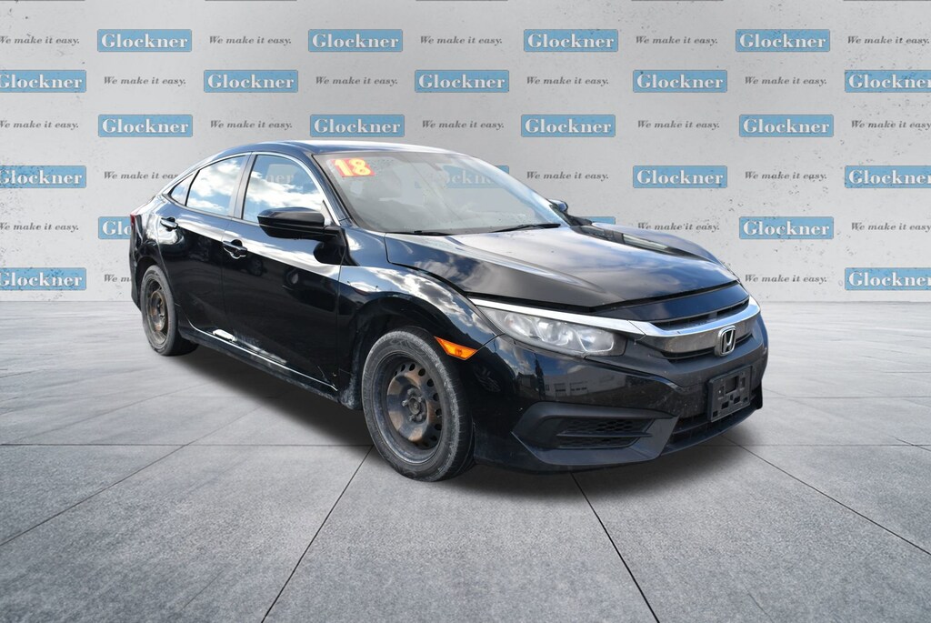 Glockner of Ironton is proud to offer this gorgeous 2018 Honda Civic in Crystal Black Pearl. This 2018 Honda Civic has passed our comprehensive inspection and comes with the following features; Black Cloth, 16 Wheels w/Full Covers, 4 Speakers, 4-Wheel Disc Brakes, ABS brakes, Air Conditioning, AM/FM radio, Automatic temperature control, Brake assist, Bumpers: body-color, Cloth Seat Trim, Compass, Delay-off headlights, Driver door bin, Driver vanity mirror, Dual front impact airbags, Dual front side impact airbags, Electronic Stability Control, Exterior Parking Camera Rear, Four wheel independent suspension, Front anti-roll bar, Front Bucket Seats, Front Center Armrest, Front reading lights, Fully automatic headlights, Illuminated entry, Low tire pressure warning, Occupant sensing airbag, Outside temperature display, Overhead airbag, Panic alarm, Passenger door bin, Passenger vanity mirror, Power door mirrors, Power steering, Power windows, Radio data system, Radio: 160-Watt AM/FM Audio System, Rear anti-roll bar, Rear window defroster, Reclining Front Bucket Seats, Remote keyless entry, Security system, Speed control, Speed-sensing steering, Steering wheel mounted audio controls, Tachometer, Telescoping steering wheel, Tilt steering wheel, and Traction control.Black Cloth.31/40 City/Highway MPGAwards:* 2018 KBB.com 10 Most Awarded Brands * 2018 KBB.com Brand Image AwardsKelley Blue Book Brand Image Awards are based on the Brand Watch(tm) study from Kelley Blue Book Market Intelligence. Award calculated among non-luxury shoppers. For more information, visit www.kbb.com. Kelley Blue Book is a registered trademark of Kelley Blue Book Co., Inc.