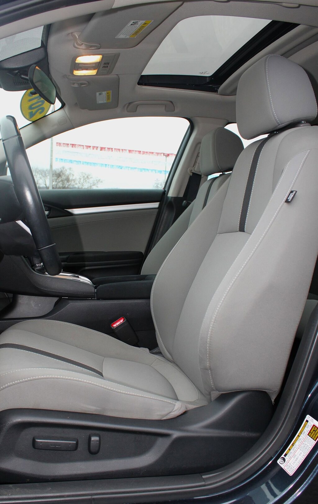 Glockner Chevrolet is proud to offer this superb 2019 Honda Civic in Cosmic Blue Metallic. This 2019 Honda Civic has passed our comprehensive inspection and comes with the following features; Gray Cloth, Forward collision: Collision Mitigation Braking System (CMBS) + FCW mitigation, Heated Front Bucket Seats, Heated front seats, Lane departure: Lane Keeping Assist System (LKAS) active, Power moonroof, 17 Alloy Wheels, 4-Wheel Disc Brakes, 8 Speakers, ABS brakes, Air Conditioning, Alloy wheels, AM/FM radio: XM, Apple CarPlay/Android Auto, Auto High-beam Headlights, Automatic temperature control, Brake assist, Bumpers: body-color, Cloth Seat Trim, Delay-off headlights, Driver door bin, Driver vanity mirror, Dual front impact airbags, Dual front side impact airbags, Electronic Stability Control, Emergency communication system: HondaLink, Exterior Parking Camera Rear, Four wheel independent suspension, Front anti-roll bar, Front Bucket Seats, Front Center Armrest, Front dual zone A/C, Front fog lights, Front reading lights, Fully automatic headlights, Heated door mirrors, Illuminated entry, Leather Shift Knob, Low tire pressure warning, Occupant sensing airbag, Outside temperature display, Overhead airbag, Overhead console, Panic alarm, Passenger door bin, Passenger vanity mirror, Power door mirrors, Power driver seat, Power steering, Power windows, Radio data system, Radio: 180-Watt AM/FM/HD/SiriusXM Audio System, Rear anti-roll bar, Rear seat center armrest, Rear window defroster, Remote keyless entry, Security system, Speed control, Speed-sensing steering, Speed-Sensitive Wipers, Split folding rear seat, Spoiler, Steering wheel mounted audio controls, Tachometer, Telescoping steering wheel, Tilt steering wheel, Traction control, Trip computer, and Variably intermittent wipers.