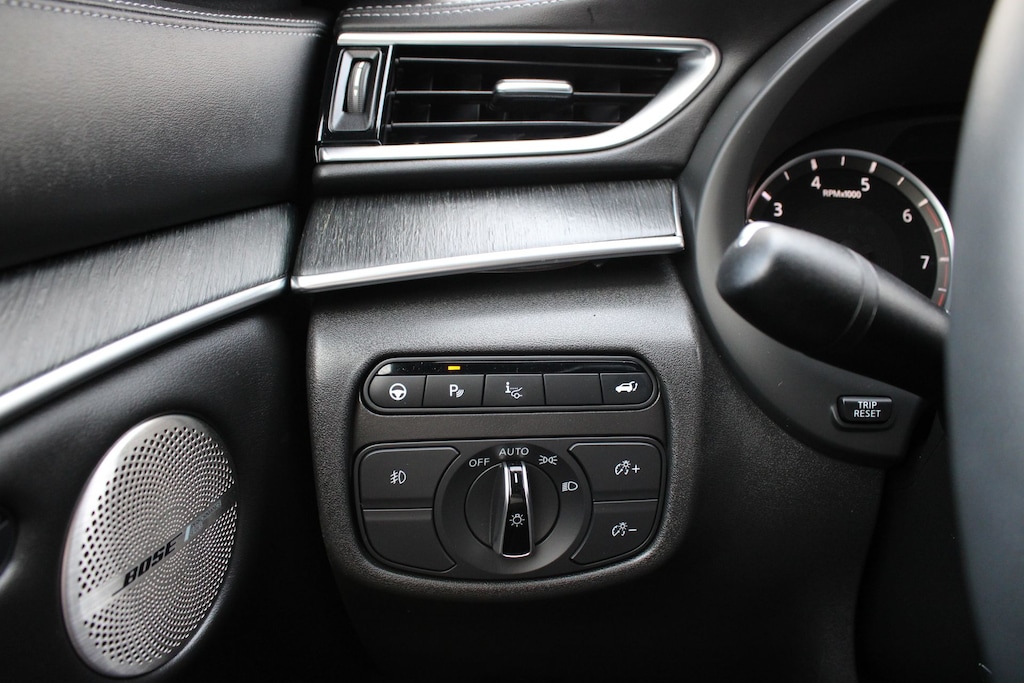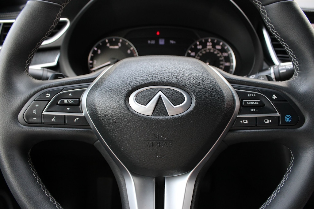 Step inside the luxurious cabin and experience the epitome of comfort and convenience. The Semi-Aniline Leather-Appointed Seating, Bose Premium Audio System, and dual-zone automatic climate control create an unparalleled driving environment. Enjoy the peace of mind provided by the comprehensive suite of safety features, including Blind Spot Monitoring, Rear Cross-Traffic Alert, and the INFINITI InTouch Emergency Communication System.