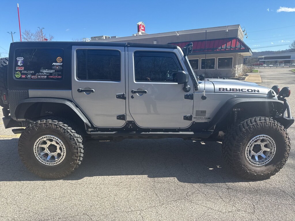 This 2018 Jeep Wrangler JK Unlimited Rubicon is an exceptional off-road adventure vehicle that combines rugged capability, advanced technology, and premium comfort. Boasting a powerful 3.6L V6 engine, 4-wheel drive, and a custom lift kit, this Wrangler is ready to tackle any terrain with confidence. The stunning silver exterior and sleek black leather interior create a bold, sophisticated look that is sure to turn heads.