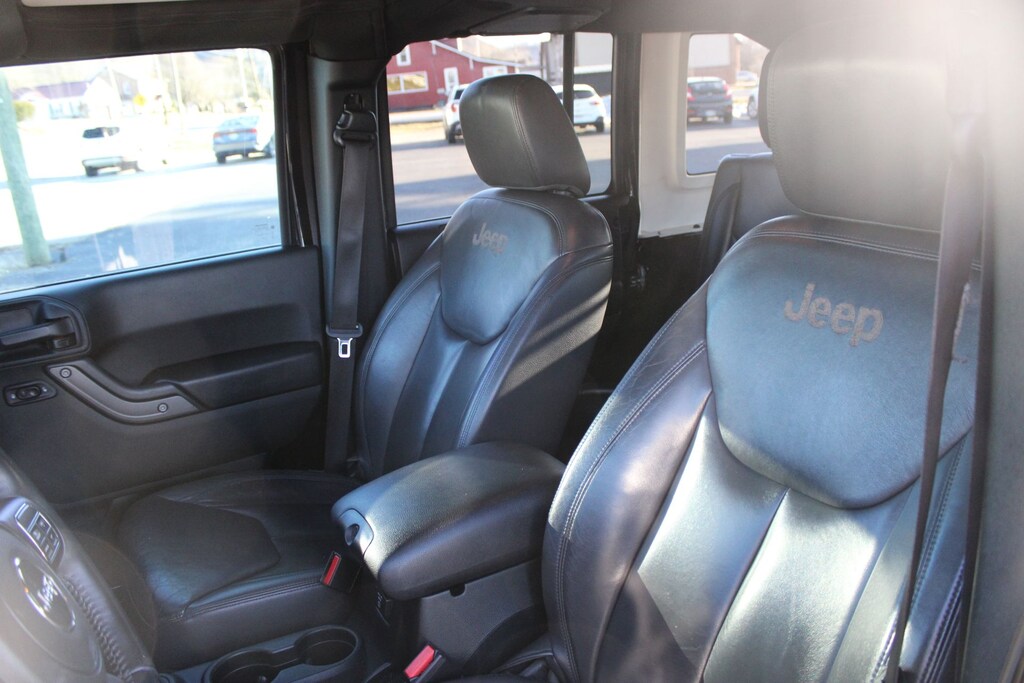 Glockner Chevrolet is proud to offer this great-looking 2018 Jeep Wrangler JK in Black Clearcoat. This 2018 Jeep Wrangler JK has passed our comprehensive inspection and comes with the following features; Connectivity Group (Tire Pressure Monitoring Display, Uconnect Voice Command w/Bluetooth, and Vehicle Information Center), MOPAR Dark Gray Leather & Premium Sound (115V Auxiliary Power Outlet, Alpine 9-Speaker w/All Weather Subwoofer, and Heated Front Seats), Power Convenience Group (Auto-Dimming Mirror w/Reading Lamp, Front 1-Touch Down Power Windows, Power Heated Mirrors, Power Locks, Remote Keyless Entry, and Security Alarm), Quick Order Package 24S Sport S (17" x 7.5" Aluminum Wheels, Chrome/Leather Wrapped Shift Knob, Deep Tint Sunscreen Windows, and Leather Wrapped Steering Wheel), Wrangler JK Unlimited Sport, 4D Sport Utility, 3.6L V6 24V VVT, 4WD, 1-Yr SiriusXM Radio Service, 16" x 7.0" Luxury Styled Steel Wheels, 3.21 Rear Axle Ratio, 4-Wheel Disc Brakes, 8 Speakers, ABS brakes, Air Conditioning, AM/FM radio, Audio Jack Input for Mobile Devices, Black 3-Piece Hard Top, Brake assist, CD player, Cloth Seats w/Adjustable Head Restraints, Compass, Driver door bin, Driver Height Adjuster Seat, Driver vanity mirror, Dual front impact airbags, Electronic Stability Control, Freedom Panel Storage Bag, Front anti-roll bar, Front Bucket Seats, Front Center Armrest w/Storage, Front fog lights, Integrated roll-over protection, Low tire pressure warning, Normal Duty Suspension, Occupant sensing airbag, Outside temperature display, Passenger door bin, Passenger vanity mirror, Power steering, R1234YF A/C Refrigerant, Radio: 130, Radio: 430, Rear anti-roll bar, Rear Window Defroster, Rear Window Wiper/Washer, Remote USB Port, Speed control, Split folding rear seat, Steering wheel mounted audio controls, Sunrider Soft Top, Tachometer, Tilt steering wheel, Traction control, Trip computer, Tubular Side Steps, and Variably intermittent wipers.