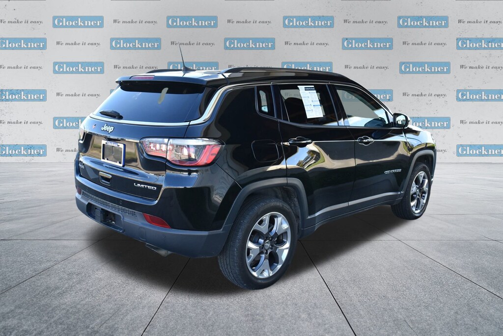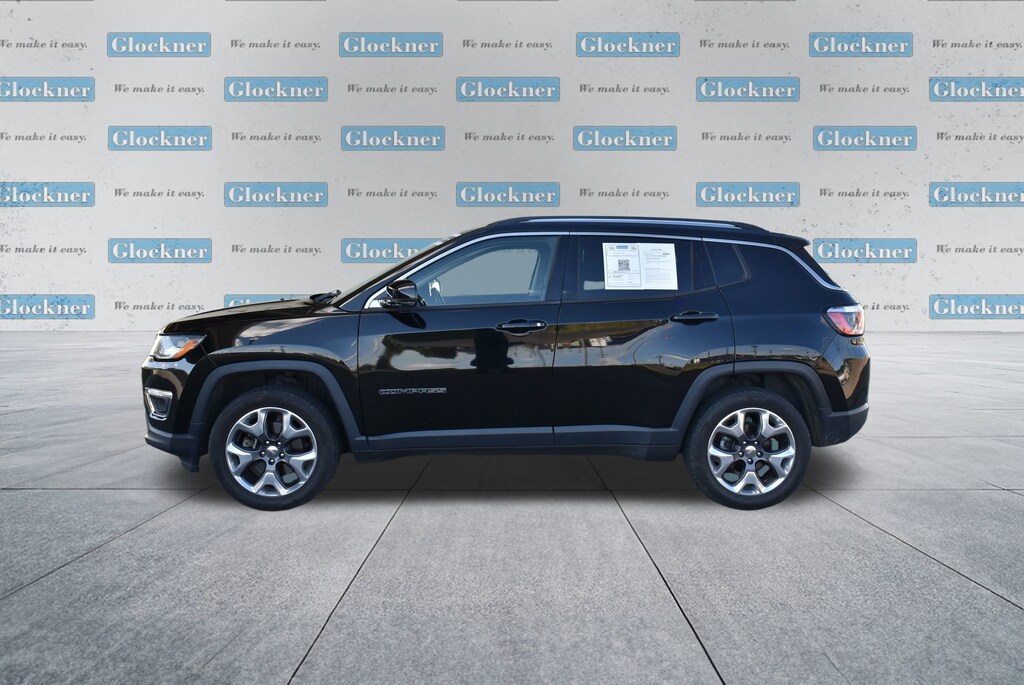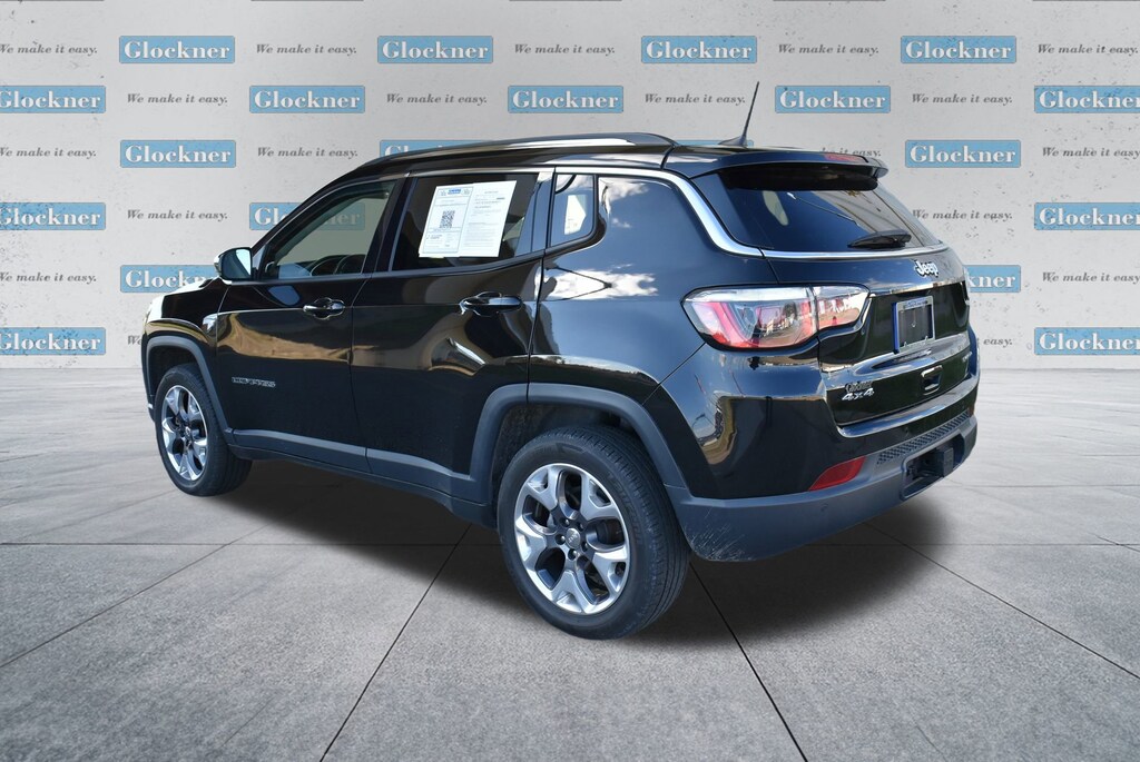 Glockner of Ironton is proud to offer this attractive-looking 2020 Jeep Compass in Diamond Black Crystal Pearlcoat. This 2020 Jeep Compass has passed our comprehensive inspection and comes with the following features; Quick Order Package 2GG, Safety & Security Group (ParkSense Rear Park Assist System), Trailer Tow Group (7 & 4 Pin Wiring Harness and Class III Receiver Hitch), Glockner Certified Certified, 4WD, 2nd Row USB Type A, 3.73 Axle Ratio, 4-Wheel Disc Brakes, 6 Speakers, 8.4 Touch Screen Display, ABS brakes, Air Conditioning, Air Vents Center Console/Rear Seats, Alloy wheels, AM/FM radio: SiriusXM, Anti-whiplash front head restraints, Apple CarPlay, Apple CarPlay/Android Auto, Auto-dimming Rear-View mirror, Automatic temperature control, Autostick Automatic Transmission, Bluetooth® Streaming Audio, Brake assist, Bumpers: body-color, Compass, Delay-off headlights, Driver door bin, Driver vanity mirror, Dual front impact airbags, Dual front side impact airbags, Electronic Stability Control, Four wheel independent suspension, Front anti-roll bar, Front Bucket Seats, Front Center Armrest w/Storage, Front dual zone A/C, Front fog lights, Front reading lights, Fully automatic headlights, Google Android Auto, GPS Antenna Input, Heated door mirrors, Heated front seats, Heated steering wheel, Illuminated entry, Knee airbag, Leather Shift Knob, Leather Trimmed Bucket Seats, Leather Wrapped Shift Knob, Low tire pressure warning, Media Hub (USB, AUX), Occupant sensing airbag, Outside temperature display, Overhead airbag, Overhead console, Panic alarm, ParkView Rear Back-Up Camera, Passenger door bin, Passenger vanity mirror, Power door mirrors, Power driver seat, Power steering, Power windows, Radio: Uconnect 4 w/8.4 Display, Rear anti-roll bar, Rear seat center armrest, Rear window defroster, Rear window wiper, Remote keyless entry, Roof rack: rails only, Security system, Speed control, Split folding rear seat, Spoiler, Steering wheel mounted audio controls, Tachometer, Telescoping steering wheel, Tilt steering wheel, Traction control, Trip computer, Turn signal indicator mirrors, USB Host Flip, Variably intermittent wipers, and Wheels: 18 x 7.0 Polished/Gray Pockets Aluminum.