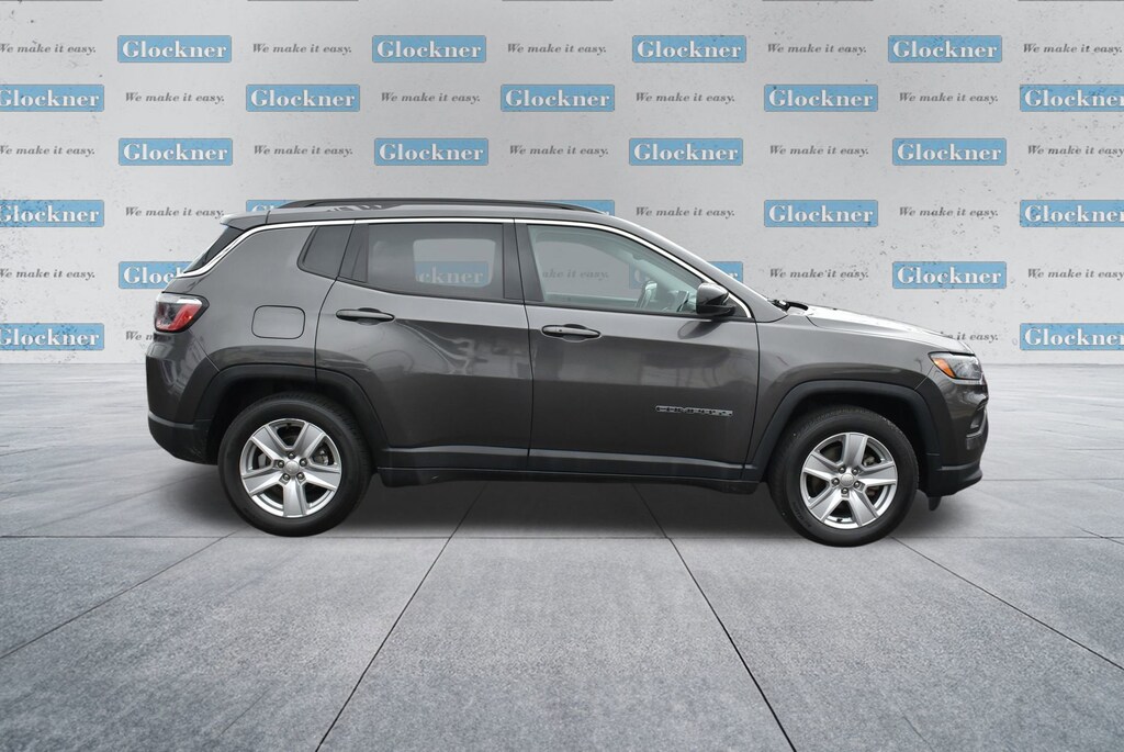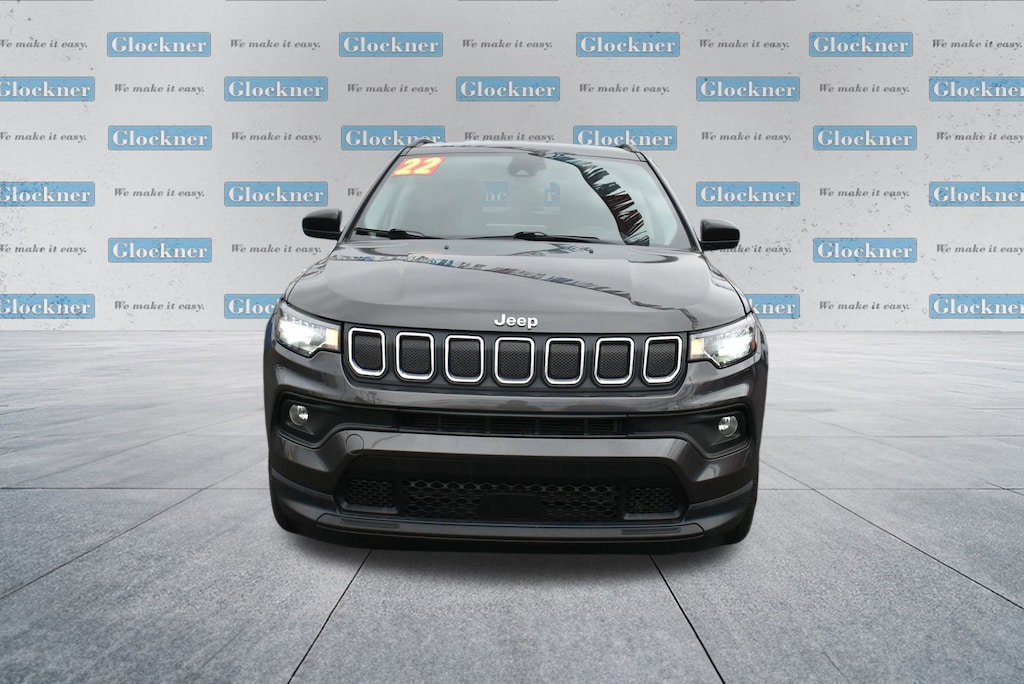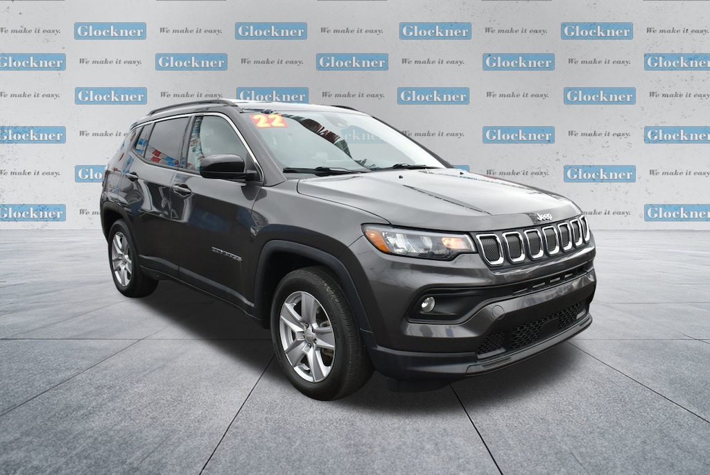 Glockner of Ironton is proud to offer this gorgeous 2022 Jeep Compass in Granite Crystal Metallic Clearcoat. This 2022 Jeep Compass has passed our comprehensive inspection and comes with the following features; Convenience Group (115V Auxiliary Power Outlet, 2nd Row USB Type A/C Charge Only, Auto-Dimming Rear-View Mirror, Foot Activated Open 'N Go Liftgate, Heated Front Seats, Heated Steering Wheel, Power Adjust 8-Way Driver Seat, Remote Start System, Reversible Carpet/Vinyl Cargo Mat, Universal Garage Door Opener, and Windshield Wiper De-Icer), Quick Order Package 28J, 17 x 7 Painted Aluminum Wheels, 3.502 Axle Ratio, 4-Wheel Disc Brakes, 6 Speakers, ABS brakes, Air Conditioning, Alloy wheels, AM/FM radio: SiriusXM, Anti-whiplash front head restraints, Auto High-beam Headlights, Brake assist, Bumpers: body-color, Compass, Delay-off headlights, Driver door bin, Driver vanity mirror, Dual front impact airbags, Dual front side impact airbags, Electronic Stability Control, Emergency communication system: SiriusXM Guardian, Four wheel independent suspension, Front anti-roll bar, Front Bucket Seats, Front Center Armrest w/Storage, Front fog lights, Front reading lights, Fully automatic headlights, Heated door mirrors, Illuminated entry, Knee airbag, Leather Shift Knob, Low tire pressure warning, Occupant sensing airbag, Outside temperature display, Overhead airbag, Overhead console, Panic alarm, ParkView Rear Back-Up Camera, Passenger door bin, Passenger vanity mirror, Power door mirrors, Power steering, Power windows, Premium Cloth/Vinyl Bucket Seats, Radio: Uconnect 5 w/10.1 Display, Rear anti-roll bar, Rear seat center armrest, Rear window defroster, Rear window wiper, Remote keyless entry, Roof rack: rails only, Speed control, Split folding rear seat, Spoiler, Steering wheel mounted audio controls, Tachometer, Telescoping steering wheel, Tilt steering wheel, Traction control, Trip computer, and Variably intermittent wipers.22/31 City/Highway MPG