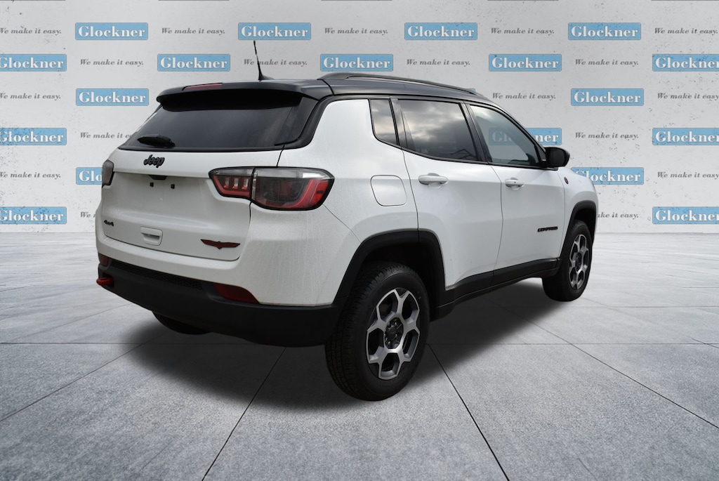 Glockner Chrysler Dodge Jeep Ram of Ashland is proud to offer this superb 2022 Jeep Compass in Bright White Clearcoat. This 2022 Jeep Compass has passed our comprehensive inspection and comes with the following features; Quick Order Package 2GE, Trailhawk Convenience Group (115V Auxiliary Power Outlet, 2nd Row USB Type A/C Charge Only, Heated Front Seats, Leather Wrapped Steering Wheel, Power 2-Way Driver Lumbar Adjust, Power Adjust 8-Way Driver Seat, Remote Start System, Reversible Carpet/Vinyl Cargo Mat, Vehicle Information Center, and Windshield Wiper De-Icer), Glockner Certified Certified, 4WD, 10.1" Touchscreen Display, 4-Wheel Disc Brakes, 4.334 Axle Ratio, 6 Speakers, ABS brakes, Air Conditioning, Alloy wheels, AM/FM radio: SiriusXM, Anti-whiplash front head restraints, Auto High-beam Headlights, Auto-dimming Rear-View mirror, Automatic temperature control, Brake assist, Bumpers: body-color, Compass, Delay-off headlights, Disassociated Touchscreen Display, Driver door bin, Driver vanity mirror, Dual front impact airbags, Dual front side impact airbags, Electronic Stability Control, Emergency communication system: SiriusXM Guardian, Four wheel independent suspension, Front anti-roll bar, Front Bucket Seats, Front Center Armrest w/Storage, Front dual zone A/C, Front fog lights, Front License Plate Bracket, Front reading lights, Fully automatic headlights, Global Telematics Box Module (TBM), Heated door mirrors, Illuminated entry, Knee airbag, Leather Shift Knob, Low tire pressure warning, Occupant sensing airbag, Outside temperature display, Overhead airbag, Overhead console, Panic alarm, ParkView Rear Back-Up Camera, Passenger door bin, Passenger vanity mirror, Power door mirrors, Power steering, Power windows, Premium Cloth/Leather Trim Bucket Seats, Radio: Uconnect 5 w/10.1" Display, Rain sensing wipers, Rear anti-roll bar, Rear seat center armrest, Rear window defroster, Rear window wiper, Remote keyless entry, Roof rack: rails only, Security system, Speed control, Split folding rear seat, Spoiler, Steering wheel mounted audio controls, Tachometer, Telescoping steering wheel, Tilt steering wheel, Traction control, Trip computer, Turn signal indicator mirrors, Variably intermittent wipers, and Wheels: 17" x 6.5" Painted Diamond Cut Aluminum.