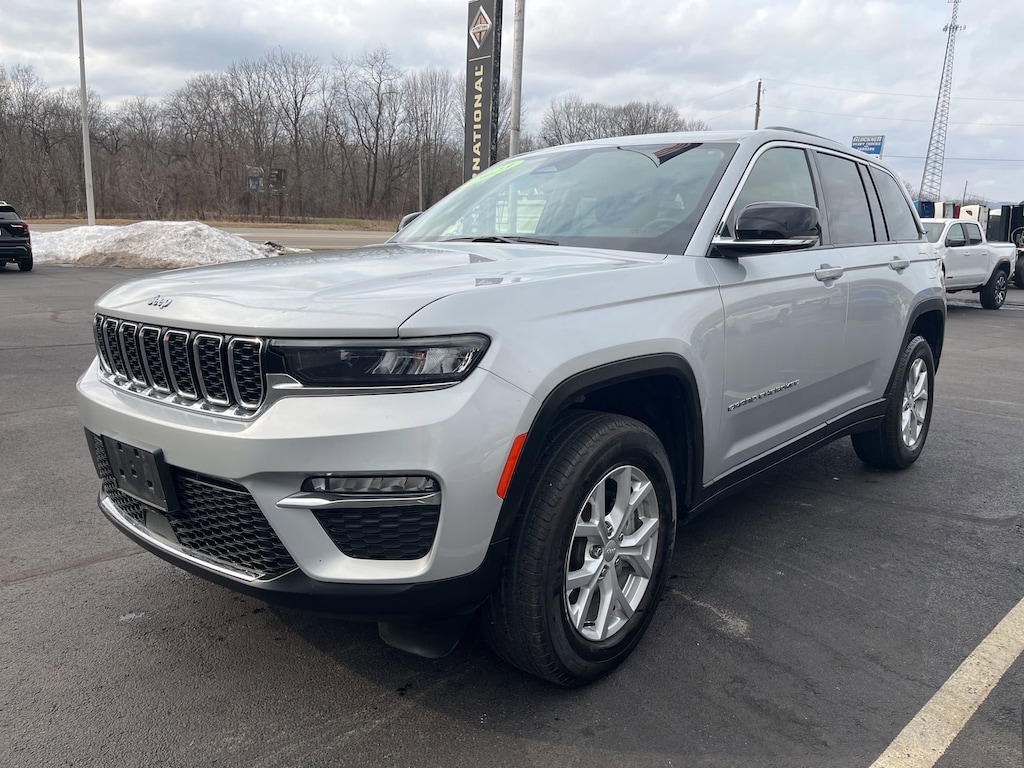 Glockner Chevrolet is proud to offer this terrific-looking 2023 Jeep Grand Cherokee in Silver Zynith. This 2023 Jeep Grand Cherokee has passed our comprehensive inspection and comes with the following features; Quick Order Package 23E, Glockner Certified Certified, 4WD, Navigation System, Power Liftgate, 3.45 Rear Axle Ratio, 4-Wheel Disc Brakes, 6 Speakers, ABS brakes, Active Noise Control System, Air Conditioning, Alloy wheels, AM/FM radio: SiriusXM with 360L, Anti-whiplash front head restraints, Audio memory, Auto High-beam Headlights, Automatic temperature control, Brake assist, Bumpers: body-color, Capri Leatherette Seats, Compass, Delay-off headlights, Driver door bin, Driver vanity mirror, Dual front impact airbags, Dual front side impact airbags, Electronic Stability Control, Emergency communication system, Four wheel independent suspension, Front anti-roll bar, Front Bucket Seats, Front Center Armrest w/Storage, Front dual zone A/C, Front fog lights, Front reading lights, Fully automatic headlights, Garage door transmitter, Heated door mirrors, Heated front seats, Heated rear seats, Heated steering wheel, Illuminated entry, Knee airbag, Low tire pressure warning, Memory seat, Molded In Color Black/Gloss Black Roof Rails, Normal Duty Suspension, Occupant sensing airbag, Outside temperature display, Overhead airbag, Overhead console, Panic alarm, ParkView Rear Back-Up Camera, Passenger door bin, Passenger vanity mirror, Power door mirrors, Power driver seat, Power passenger seat, Power steering, Power windows, Radio data system, Radio: Uconnect 5 Nav w/10.1 Display, Rear anti-roll bar, Rear reading lights, Rear window defroster, Rear window wiper, Remote keyless entry, Security system, Speed control, Speed-Sensitive Wipers, Split folding rear seat, Spoiler, Steering wheel mounted audio controls, Tachometer, Telescoping steering wheel, Tilt steering wheel, Traction control, Trip computer, Turn signal indicator mirrors, Variably intermittent wipers, Voltmeter, and Wheels: 18 x 8 Fully Painted Aluminum.