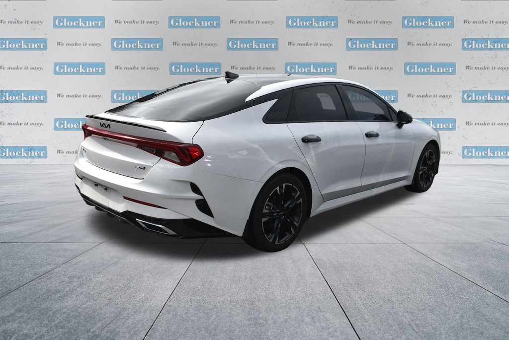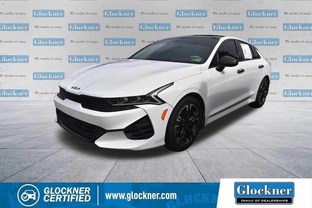 Glockner of Ironton is proud to offer this outstanding 2022 Kia K5 in Glacial White Pearl. This 2022 Kia K5 has passed our comprehensive inspection and comes with the following features; GT-Line AWD Premium Package (Forward Collision Avoidance-Assist - Cyclist, Forward Collision Avoidance-Assist - Junction Turn, Gloss Black Pillar & Door Frame Cover, Heated Steering Wheel, Highway Driving Assist, LED Interior Lighting, LED Projection Headlights, Navigation-Based Smart Cruise Control - Curve, Panoramic Sunroof, and Smart Cruise Control w/Stop & Go), Glockner Certified Certified, 4-Wheel Disc Brakes, 6 Speakers, ABS brakes, Air Conditioning, Alloy wheels, AM/FM radio: SiriusXM, Apple CarPlay & Android Auto, Auto High-beam Headlights, Automatic temperature control, Brake assist, Bumpers: body-color, Cargo Net, Cloth/Leatherette Seat Trim, Delay-off headlights, Driver door bin, Driver vanity mirror, Dual front impact airbags, Dual front side impact airbags, Electronic Stability Control, Four wheel independent suspension, Front anti-roll bar, Front Bucket Seats, Front Center Armrest, Front dual zone A/C, Front fog lights, Front reading lights, Fully automatic headlights, Heated door mirrors, Heated Front Bucket Seats, Heated front seats, Illuminated entry, Knee airbag, Low tire pressure warning, Navigation System, Occupant sensing airbag, Outside temperature display, Overhead airbag, Overhead console, Panic alarm, Passenger door bin, Passenger vanity mirror, Power door mirrors, Power driver seat, Power steering, Power windows, Radio data system, Radio: AM/FM/MP3 Audio System, Rear anti-roll bar, Rear seat center armrest, Rear side impact airbag, Rear window defroster, Remote keyless entry, Security system, Speed control, Speed-sensing steering, Split folding rear seat, Spoiler, Sport steering wheel, Steering wheel mounted audio controls, Tachometer, Telescoping steering wheel, Tilt steering wheel, Traction control, Trip computer, Turn signal indicator mirrors, Variably intermittent wipers, and Wheels: 7.5J x 18 Gloss Black Machined Finish Alloy.