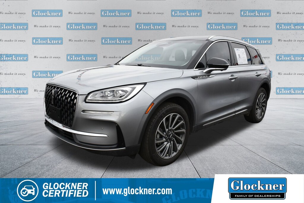 Certified. Certification Program Details: 12 Months or 12,000 miles Comprehensive Warranty. 5 Years or 100,000 miles Powertrain Warranty.Glockner of Ironton is proud to offer this wonderful 2023 Lincoln Corsair in Silver Radiance Metallic Clearcoat. This 2023 Lincoln Corsair has passed our comprehensive inspection and comes with the following features; Glockner Certified Certified, 10 Speakers, 19 Bright Machined Aluminum Wheels, 3.81 Axle Ratio, 4-Wheel Disc Brakes, ABS brakes, Air Conditioning, Alloy wheels, AM/FM radio: SiriusXM, Auto High-beam Headlights, Auto-dimming Rear-View mirror, Automatic temperature control, Brake assist, Bumpers: body-color, Compass, Delay-off headlights, Driver door bin, Driver vanity mirror, Dual front impact airbags, Dual front side impact airbags, Electronic Stability Control, Emergency communication system: SYNC 4 911 Assist, Four wheel independent suspension, Front anti-roll bar, Front Bucket Seats, Front Center Armrest, Front dual zone A/C, Front reading lights, Fully automatic headlights, Heated door mirrors, Heated front seats, Illuminated entry, Knee airbag, Leather steering wheel, Low tire pressure warning, Memory seat, Navigation system: Connected Navigation (3-year trial), Occupant sensing airbag, Outside temperature display, Overhead airbag, Overhead console, Panic alarm, Passenger door bin, Passenger vanity mirror, Power door mirrors, Power driver seat, Power Liftgate, Power passenger seat, Power steering, Power windows, Premium Leather Heated Comfort Seats, Radio data system, Radio: Lincoln Premium Audio System w/MP3, Rear anti-roll bar, Rear Parking Sensors, Rear reading lights, Rear seat center armrest, Rear window defroster, Rear window wiper, Remote keyless entry, Roof rack: rails only, Security system, SiriusXM Radio, Speed control, Speed-sensing steering, Speed-Sensitive Wipers, Split folding rear seat, Spoiler, Steering wheel mounted A/C controls, Steering wheel mounted audio controls, SYNC 4 Communications & Entertainment System, Tachometer, Telescoping steering wheel, Tilt steering wheel, Traction control, Trip computer, and Variably intermittent wipers.21/28 City/Highway MPG